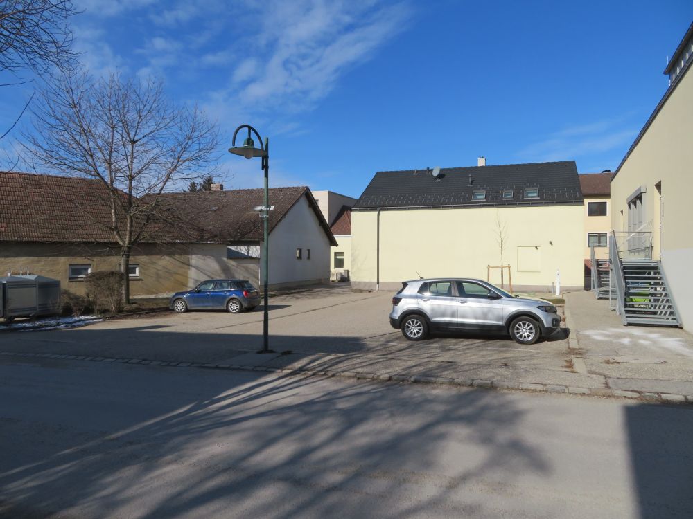 Kurz danach, beim Sparkassengebäude, führt ein Verbindungsgässchen zum Ausgangs-Parkplatz hindurch.