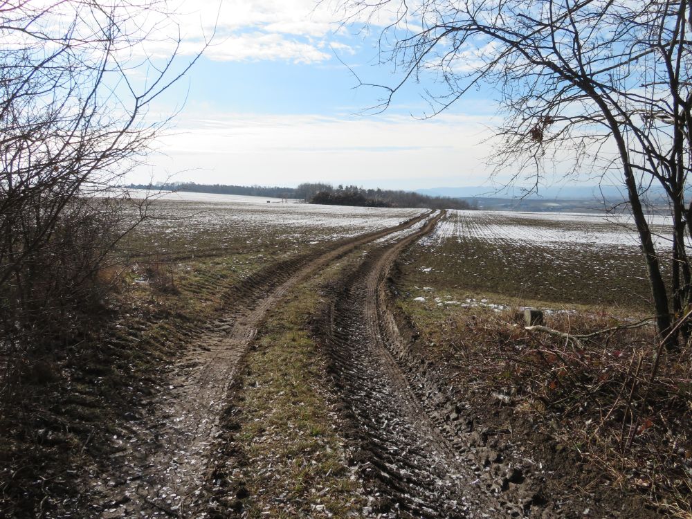 ...und diesem folgend, mit Blick zur Kirche, zum Wald hinauf.