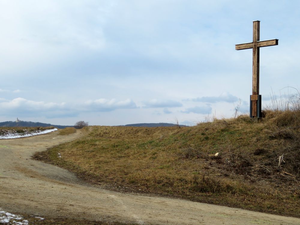 Vorbei am Jungbauernkreuz geht es dann nach Weinsteig hinab.