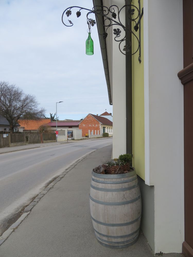 Entlang der Schottenfeldstraße (L33), vorbei an einem Weingut und Heurigenbetrieb...