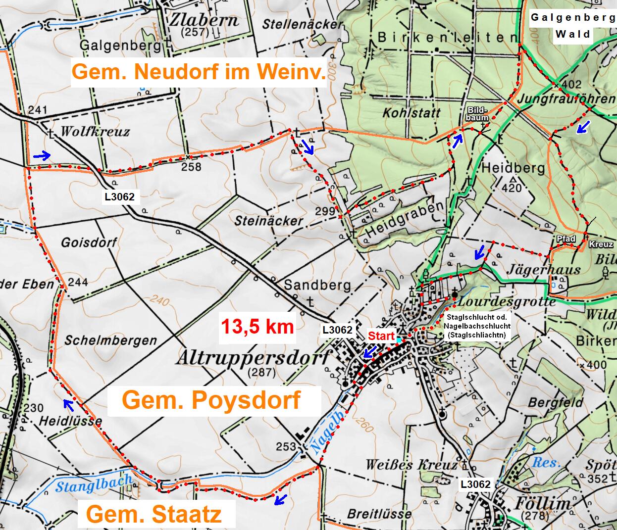 Danach führt ein Verbindungsweg in die "Sta(n)glschlucht" (wird auch Nagelbachschlucht oder "Staglschliachtn" genannt).
