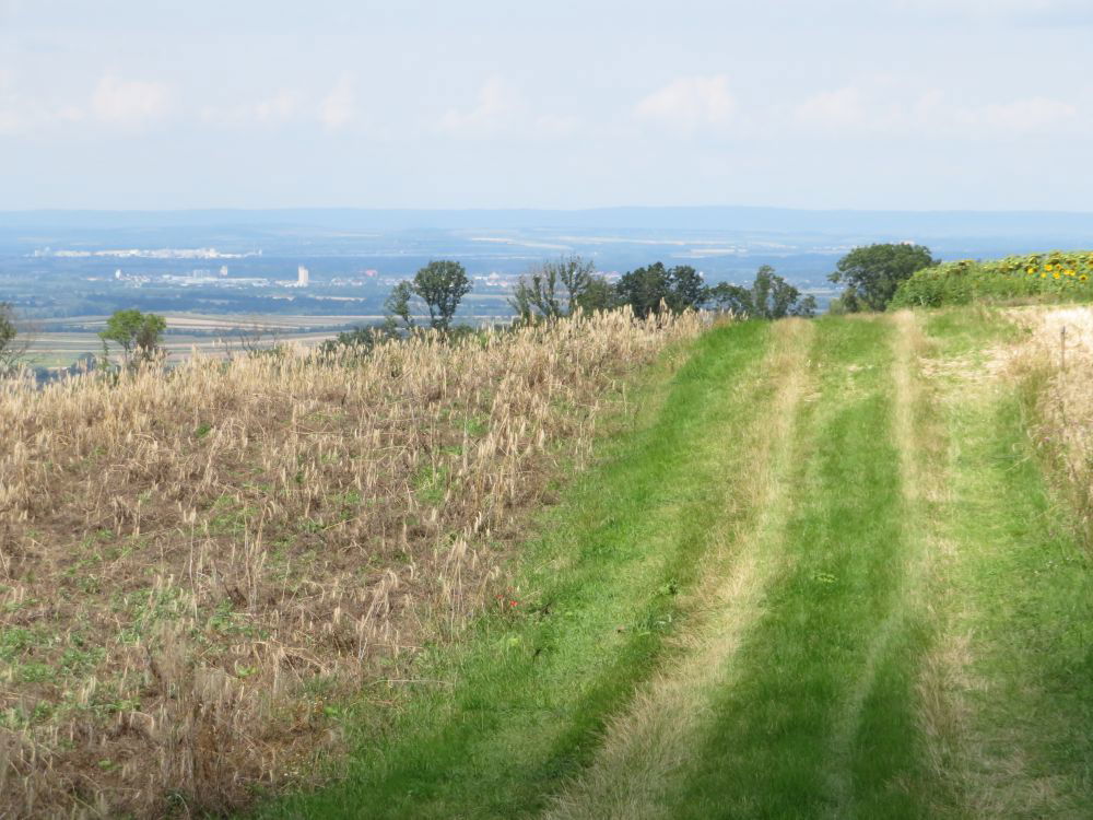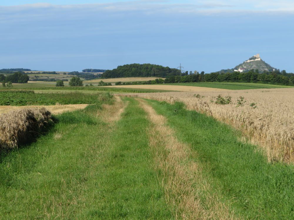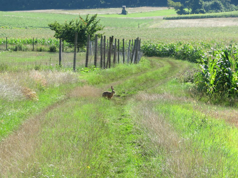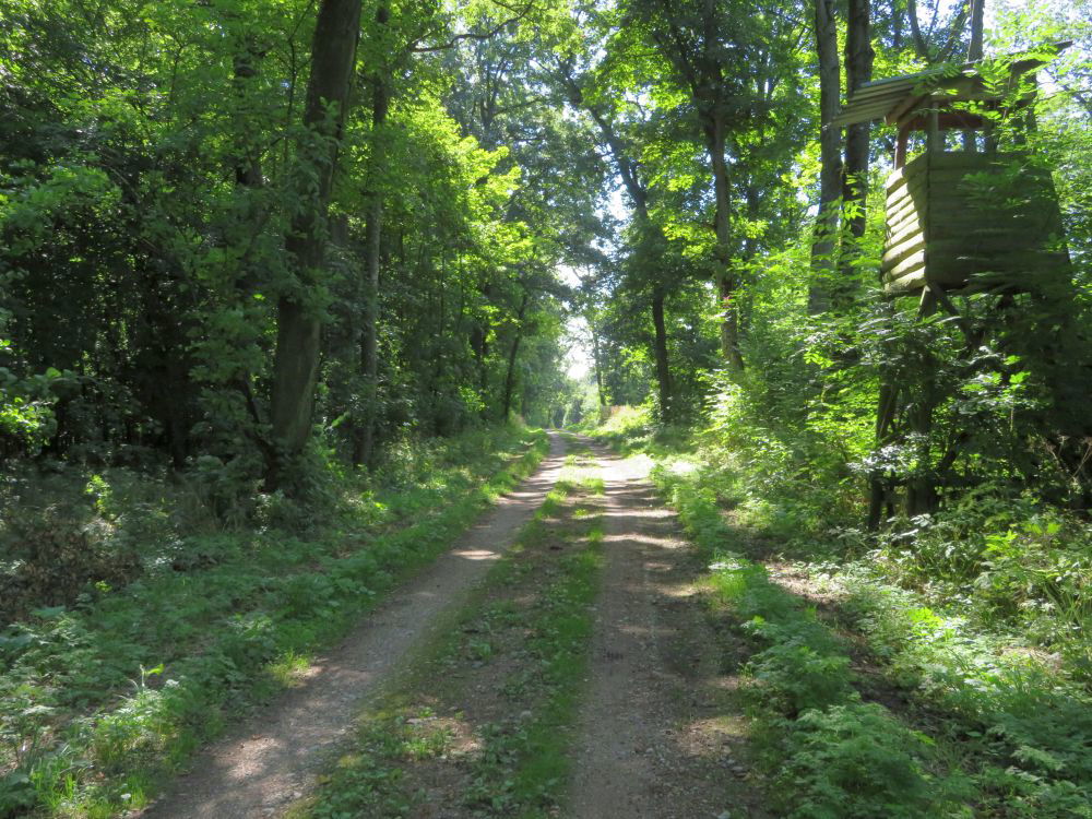 Nach einem Links-Rechts-Knick in Nähe des Jägerhauses geht es durch Felder hindurch weiter.