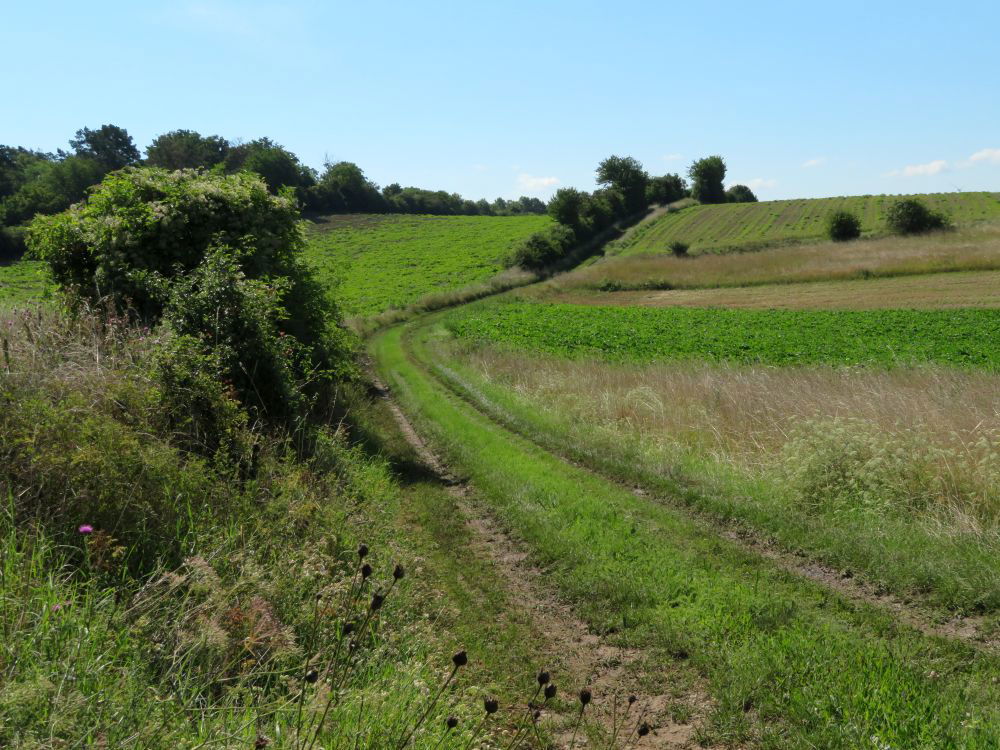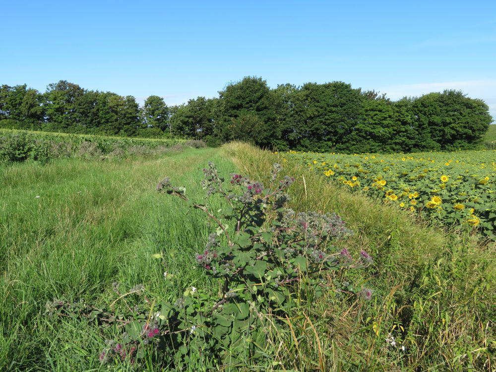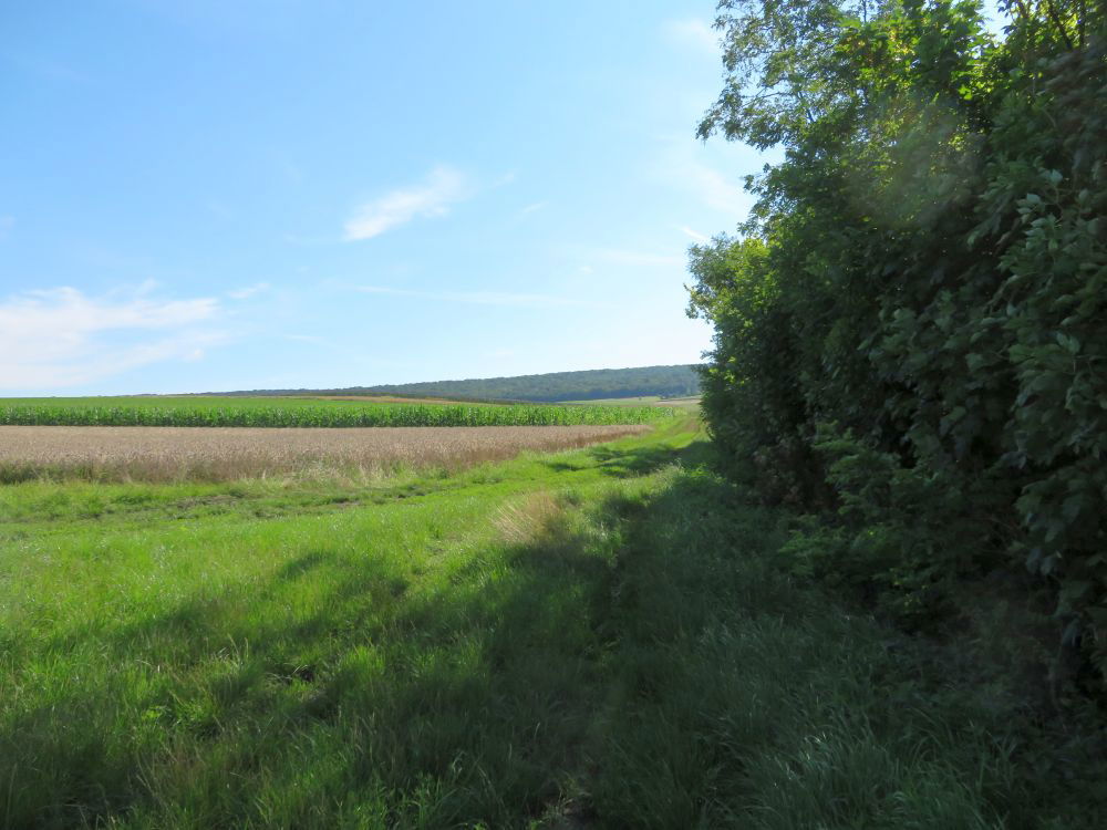 Danach wandere ich zwischen Felder hindurch Richtung Westen.