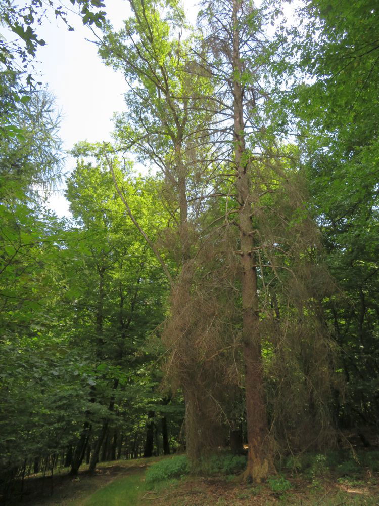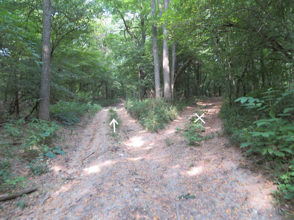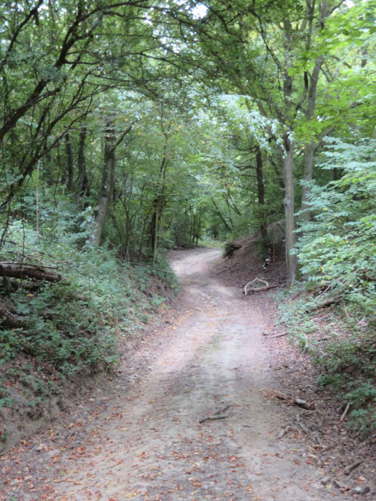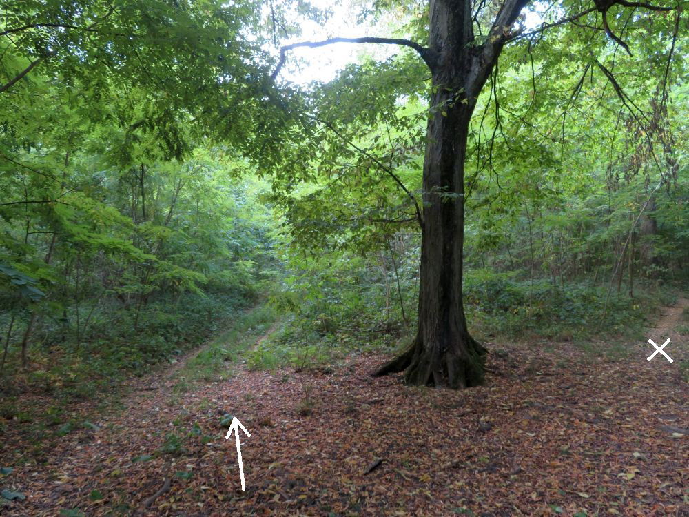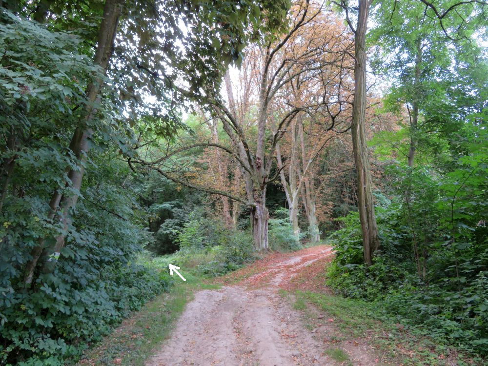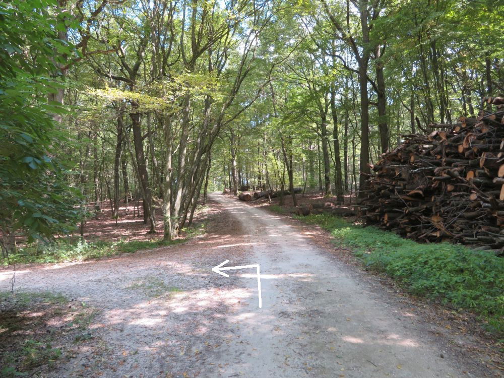 Im Wald, bei markanten Bäumen, zweigen wir links ab.