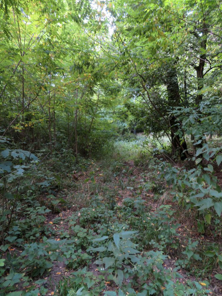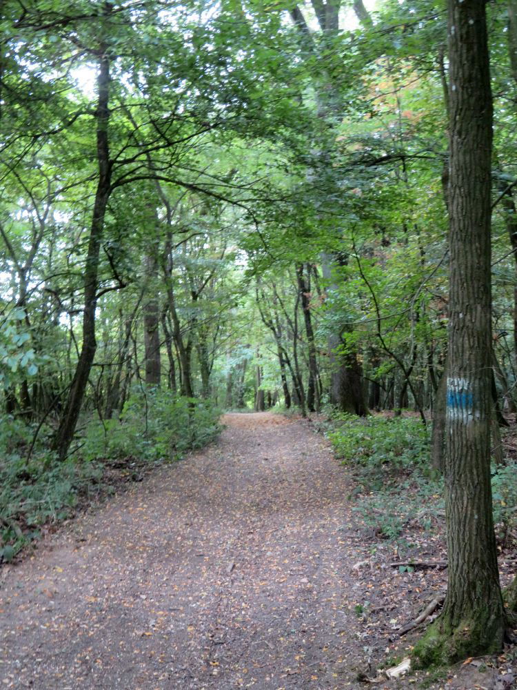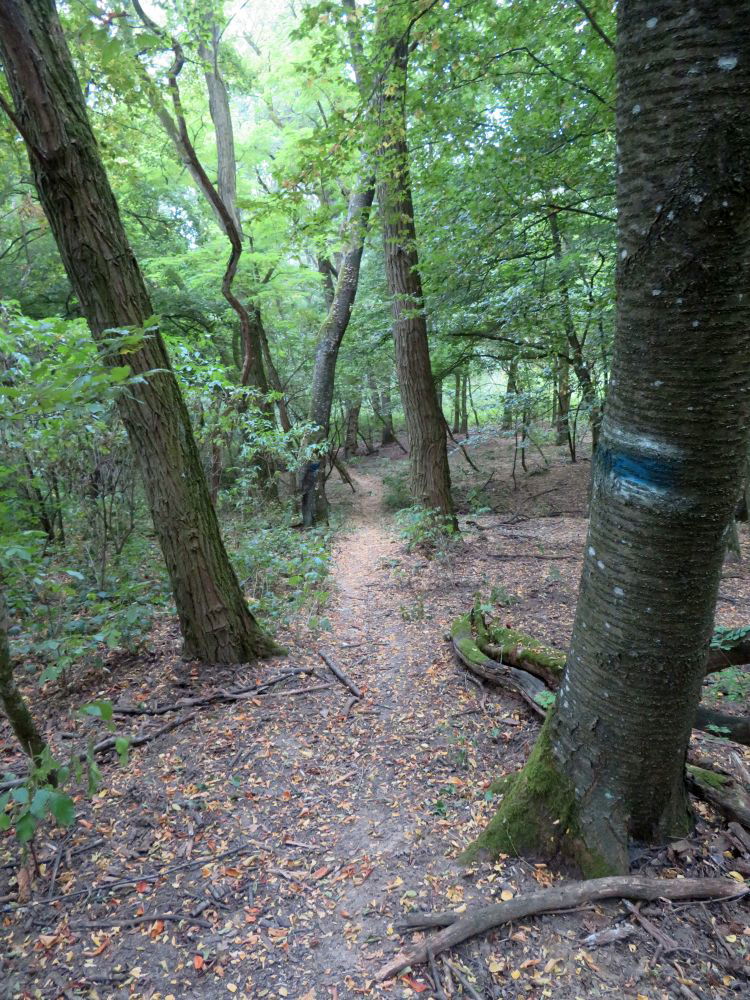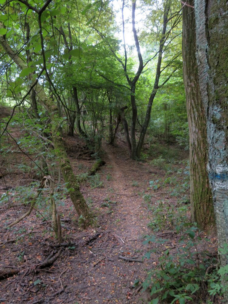 Auf Höhe 365 m wird ein markierter Wanderweg gequert: