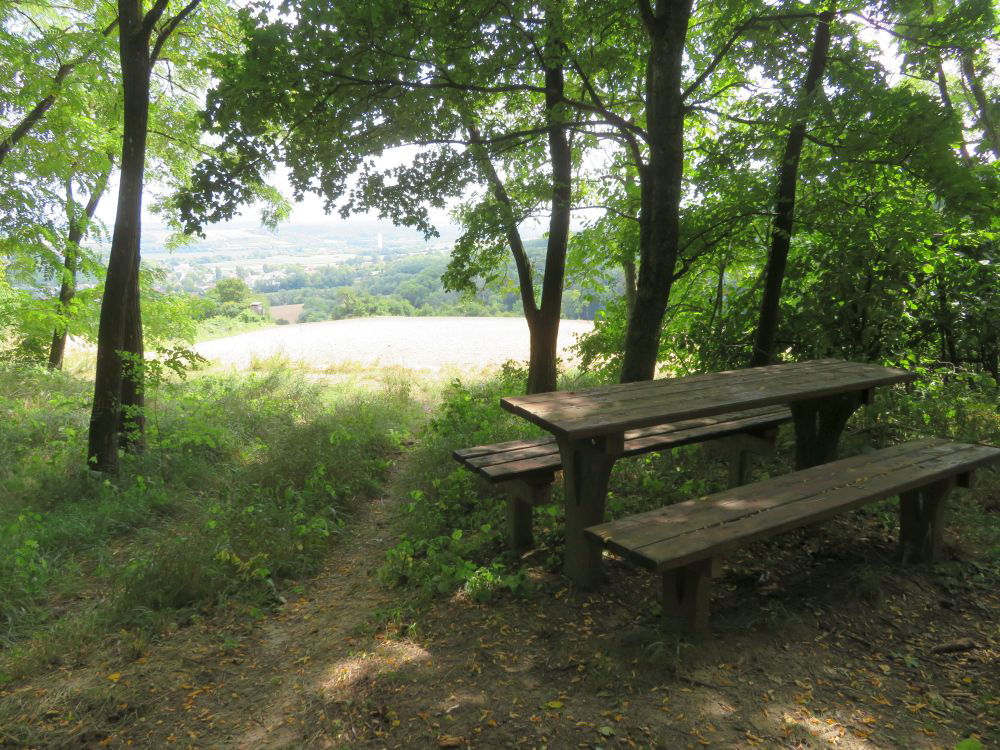 Dazwischen zweigt unser Abstiegsweg rechtsseitig bis zum einem Rastplatz am Waldrand ab.