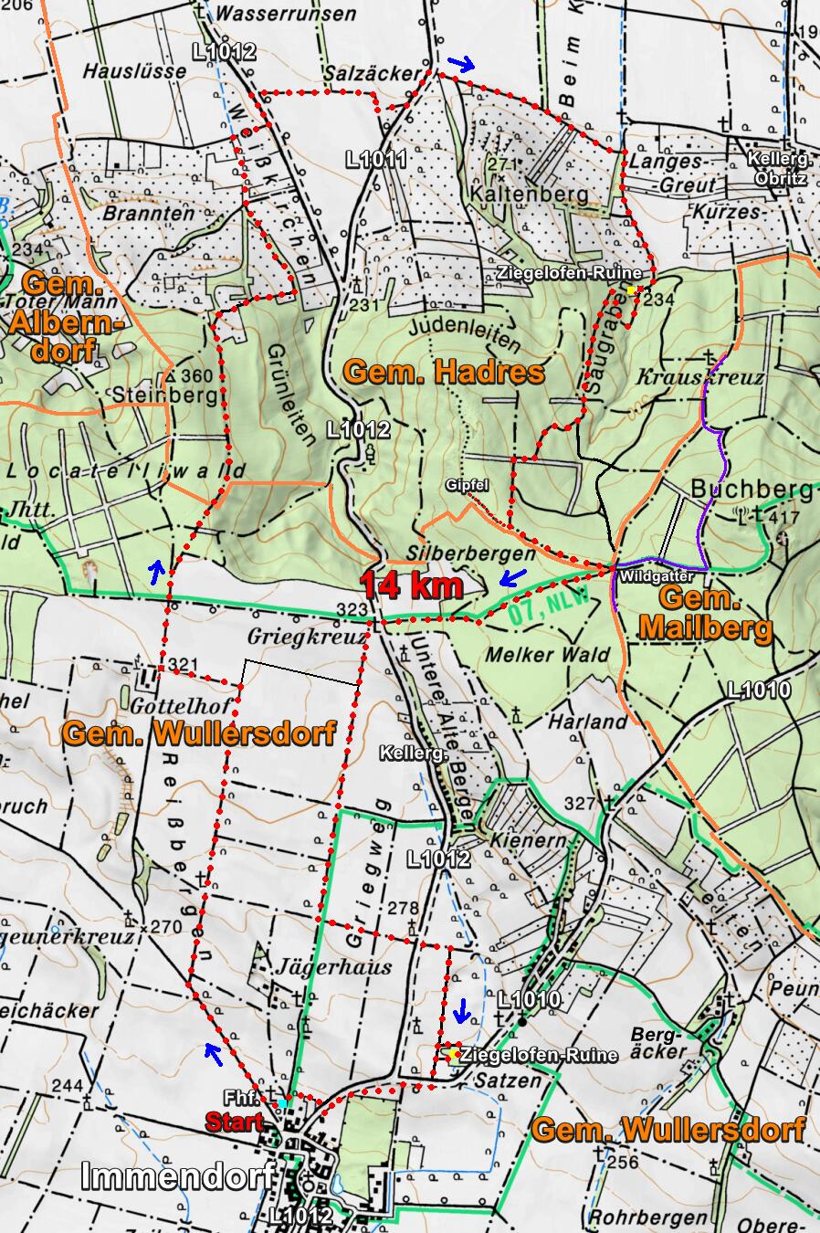 Danach geht es zurück und entlang der Gemeindegrenze weiter.