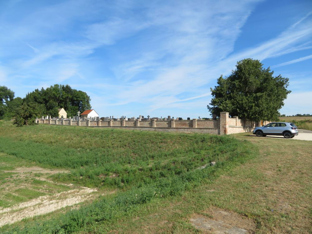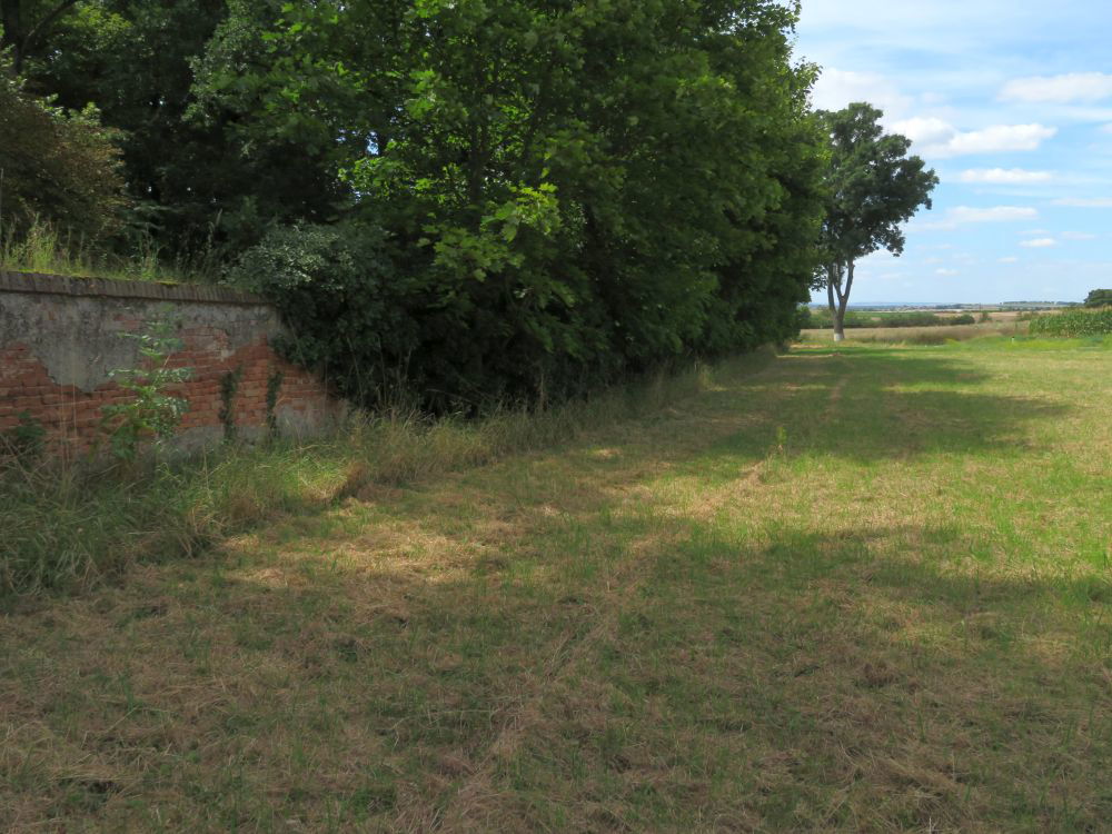 Von hier aus schreite ich entlang der Friedhofsmauer zum Fahrweg auf der Rückseite...