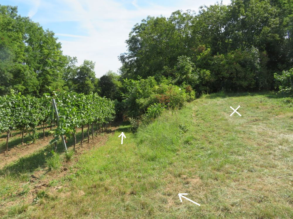 Bei der querenden L1010 angelangt, geht es für mich entlang der ehemaligen Schlossmauer Richtung Ort hinab.