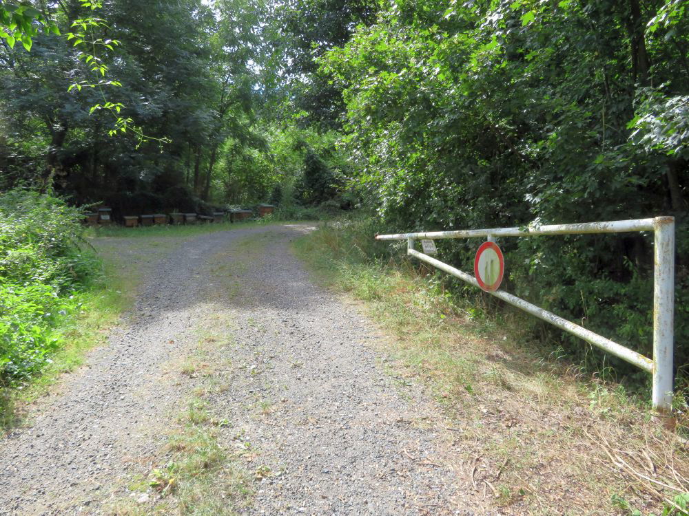 Vorbei an einer Schranke und dem Wegverlauf rechts folgend: