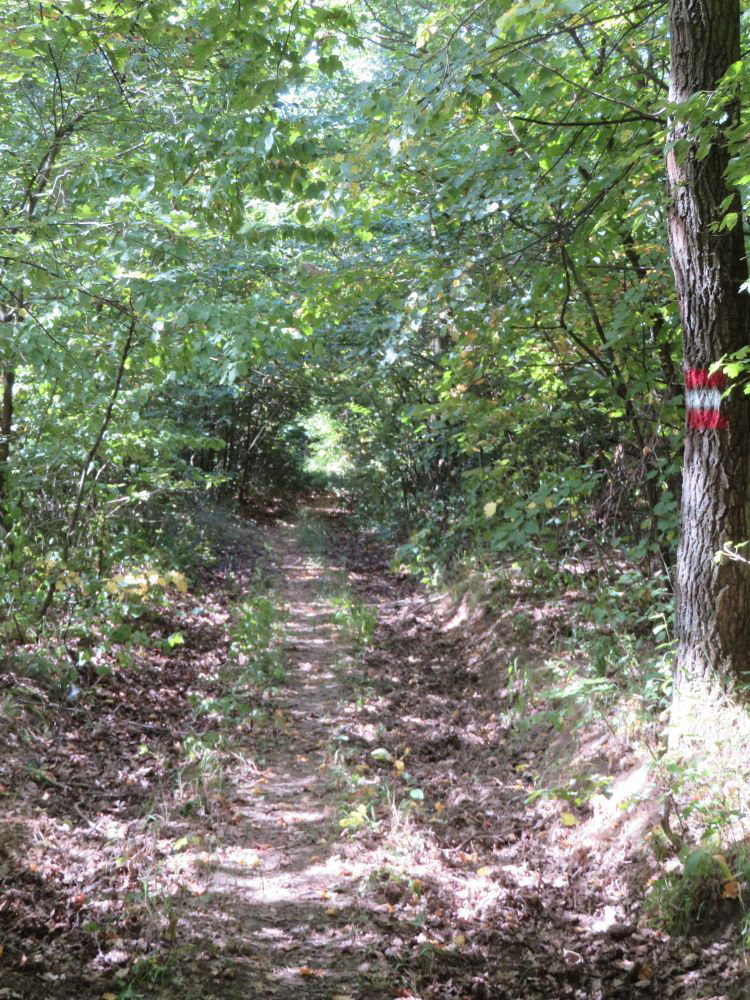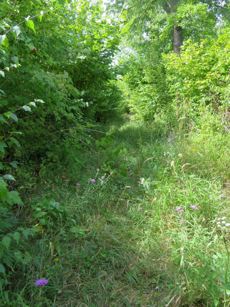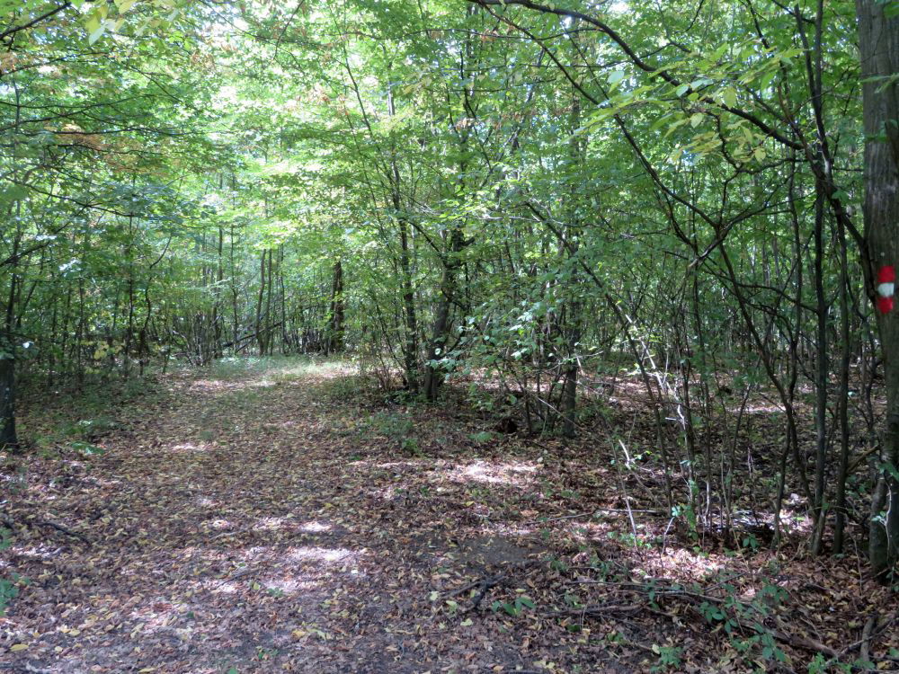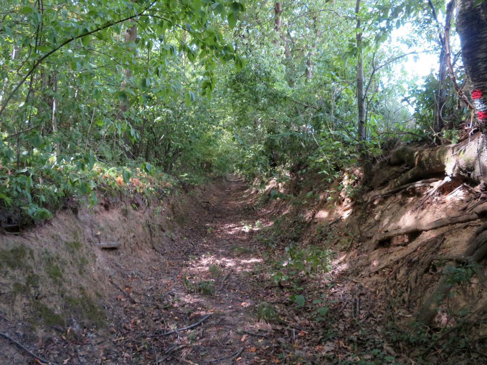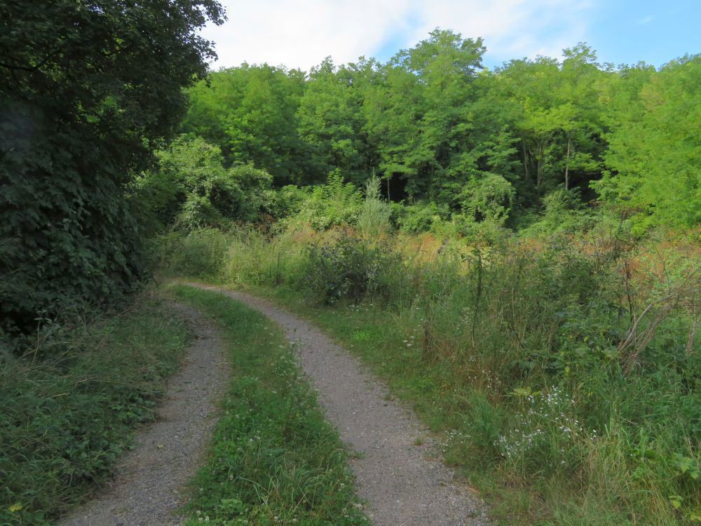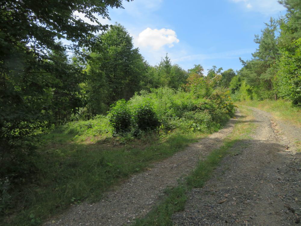 Hier kommt der markierte Wanderweg vom Buchberg herüber.