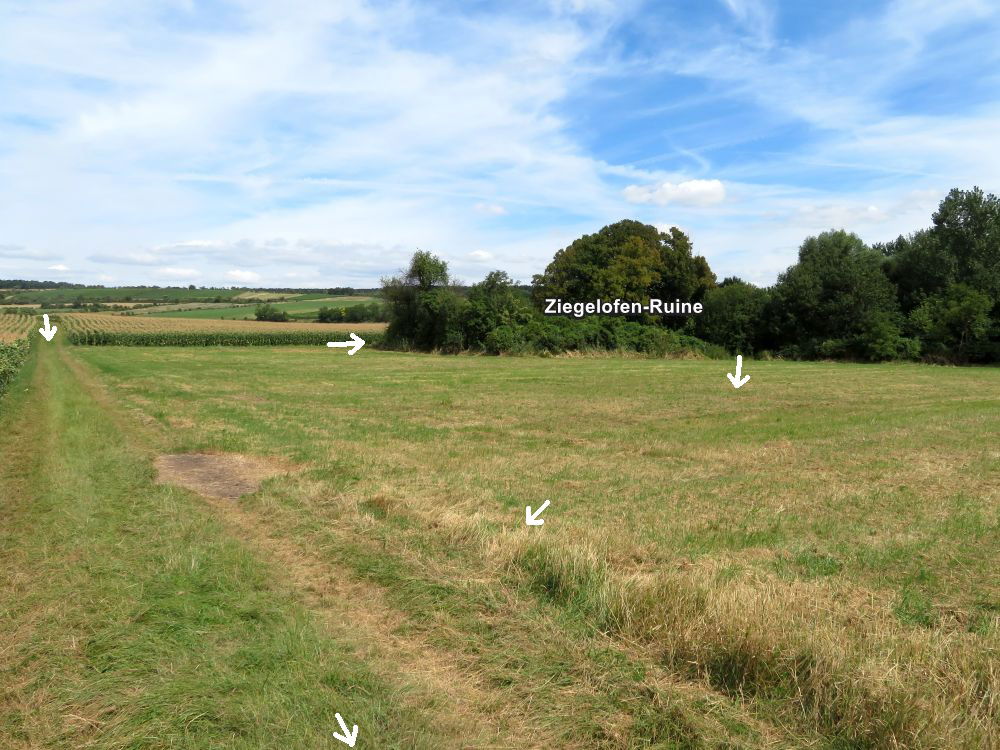 In dem Waldstück linkerhand soll sich eine weitere Ziegelofen-Ruine befinden.