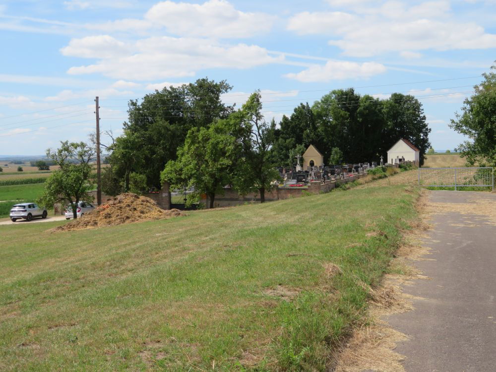 Am Ortsrand angelangt, quere ich dann zum Friedhof hinüber.