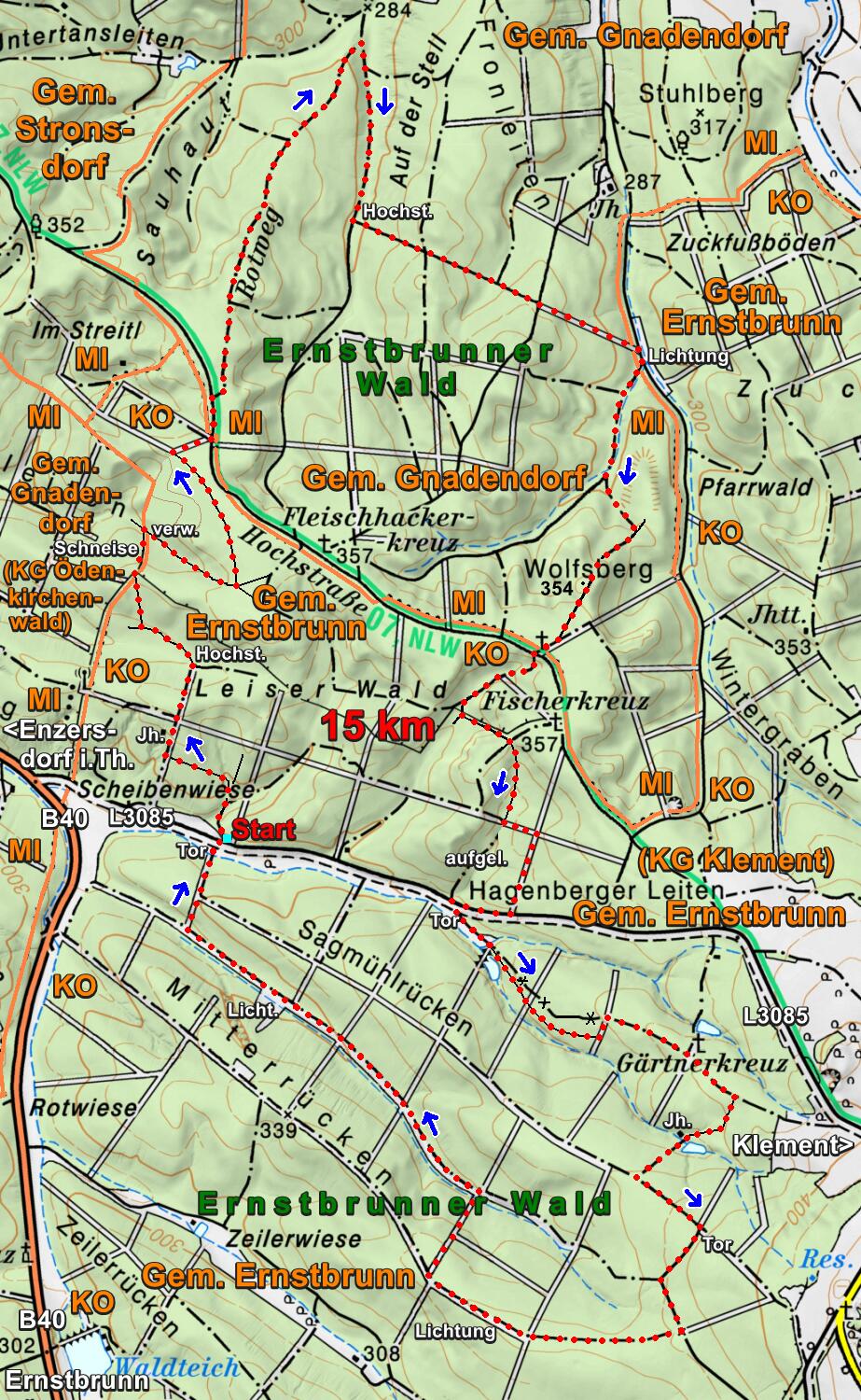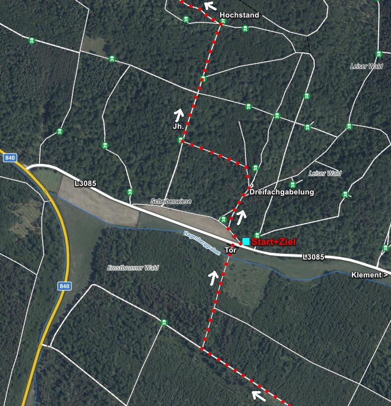 Start und Ziel: Im Ernstbrunner Wald bei der Scheibenwiese (an der L3085, nahe der B40).