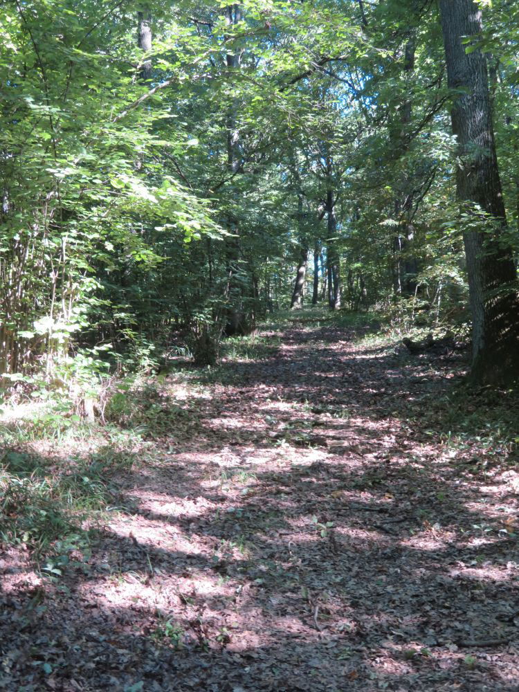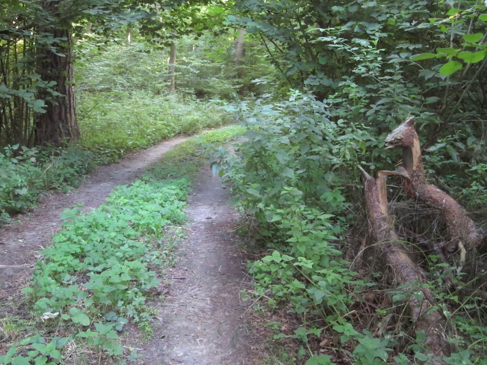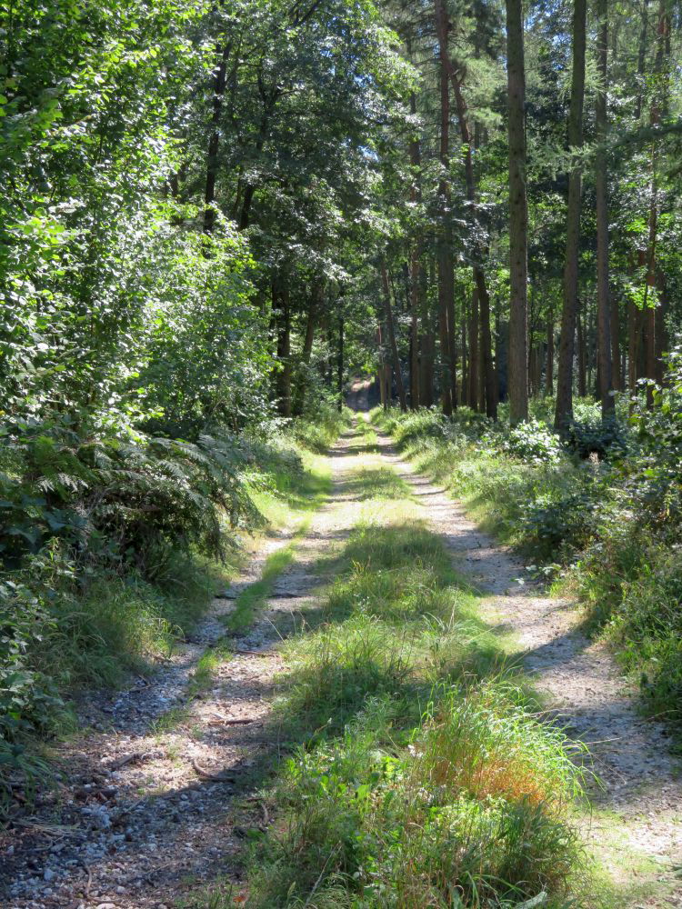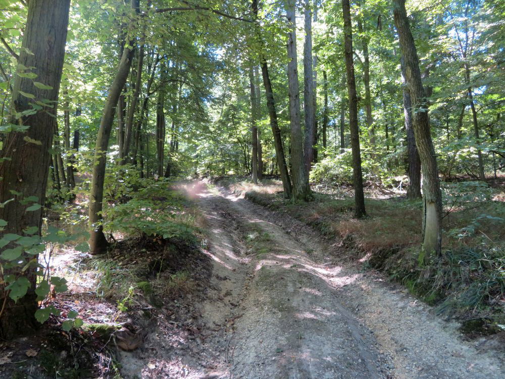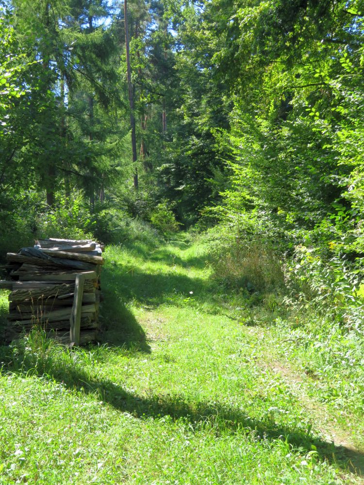 Nach einer kleinen Lichtung geht es wieder in den Forst hinein und abwärts.