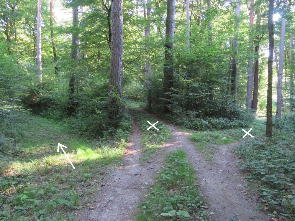 ...und folge jenem bis zur Einmündung in einen Querweg bei einem Hochstand.