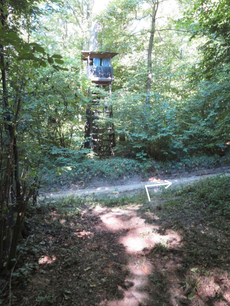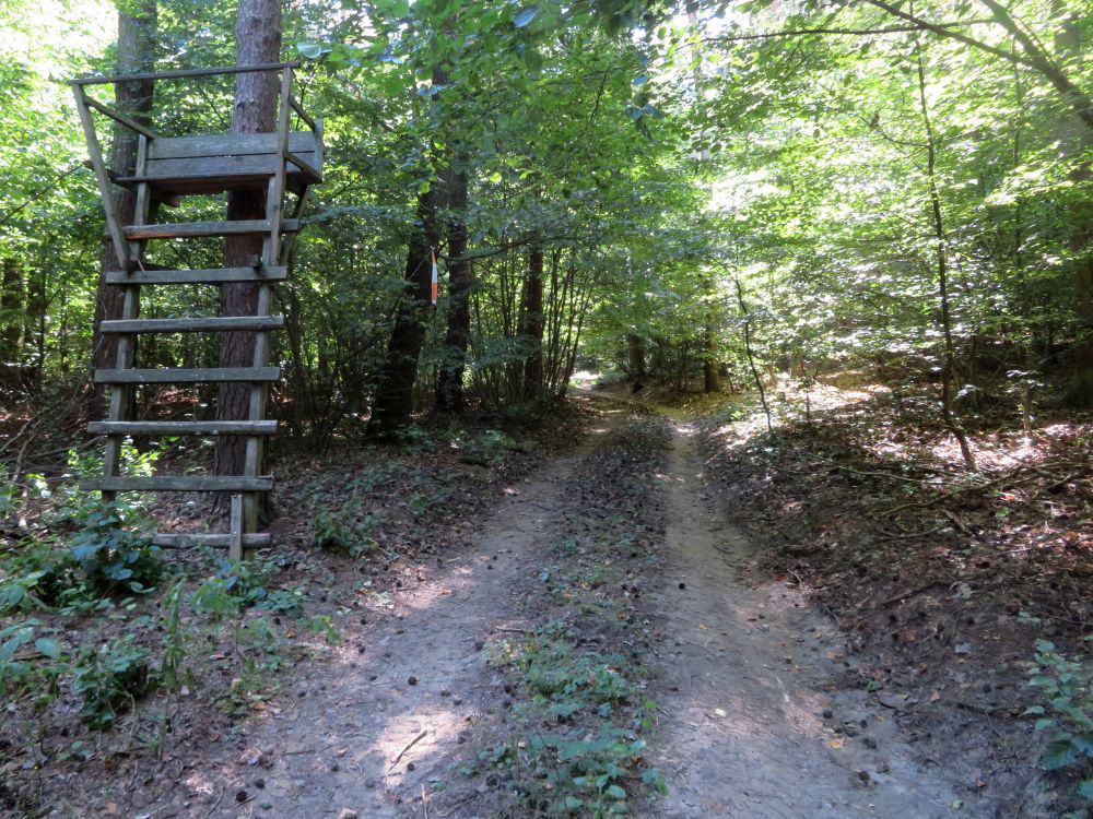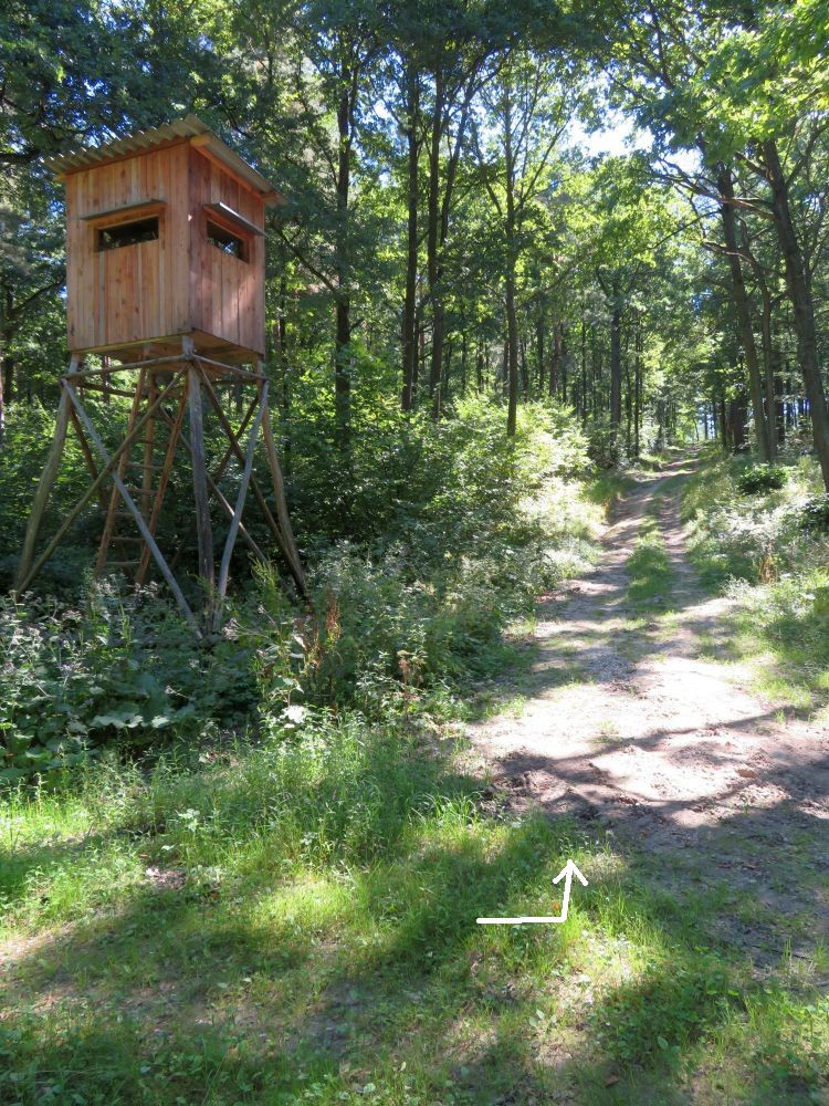 Am Ende des Forstfahrweges, bei einem Hochstand, geht es links weiter.