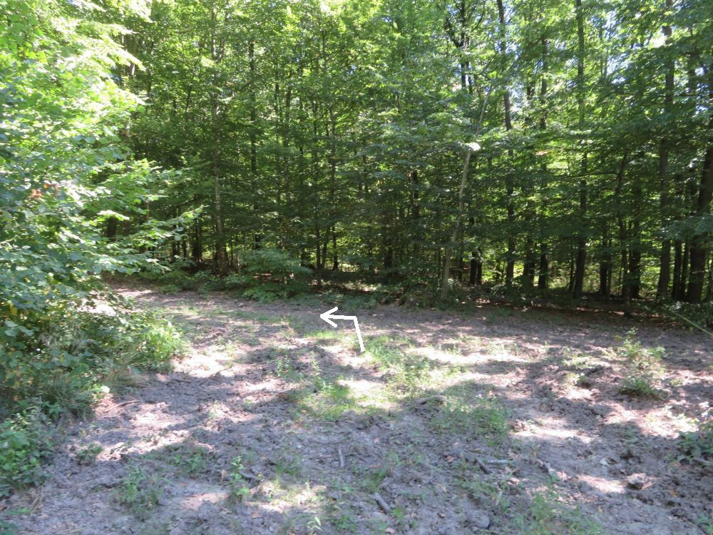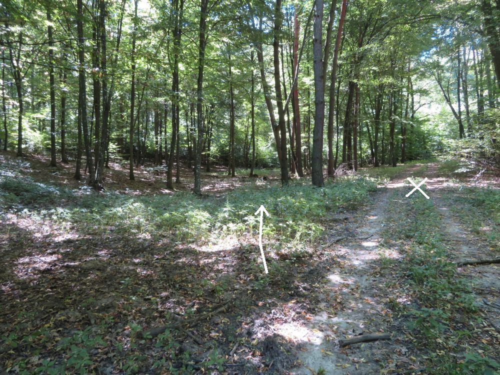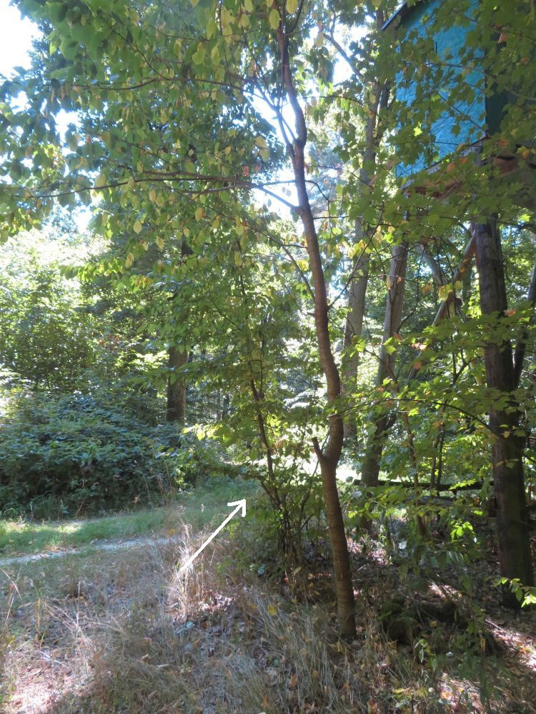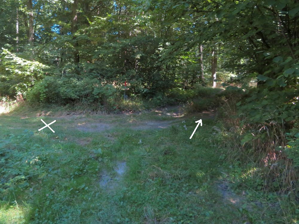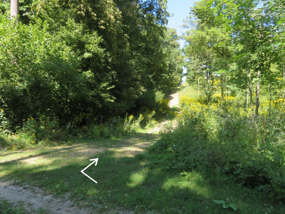 Am Ende der großen Lichtung geht es rechtsseitig in eine Senke hinab.