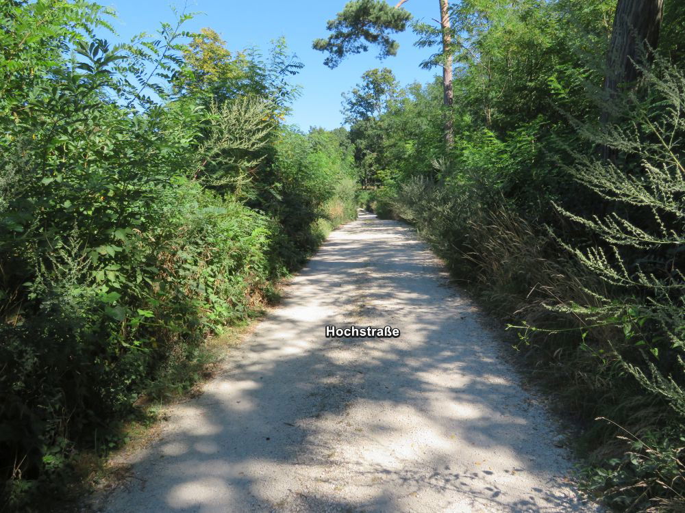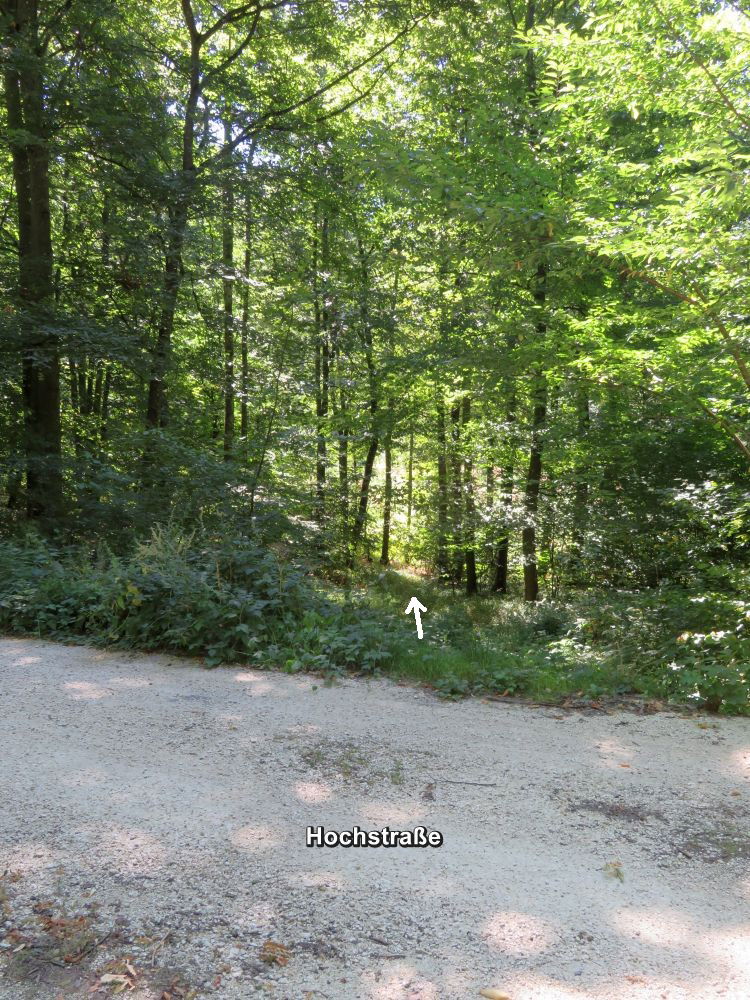 Entlang einer Schneise rechtsseitig quere ich dann zur Hochstraße hinüber.