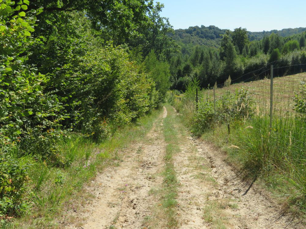 Danach wandere ich leicht abwärts bis zu einer Wegeinmündung und folge dem Querweg...