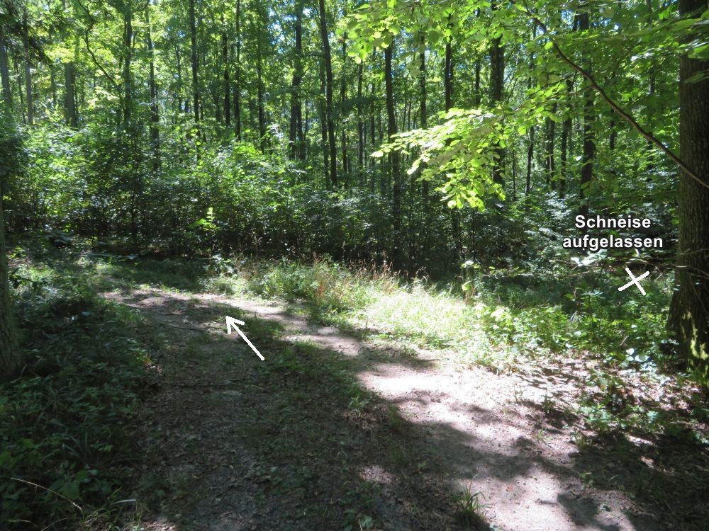 Die letzte Schneise zur Landesstraße hinab wurde leider aufgelassen, somit quere ich zur nächsten hinüber.
