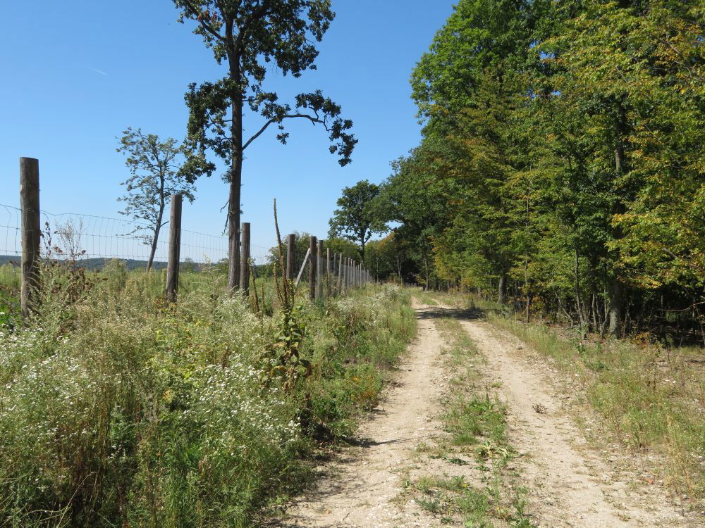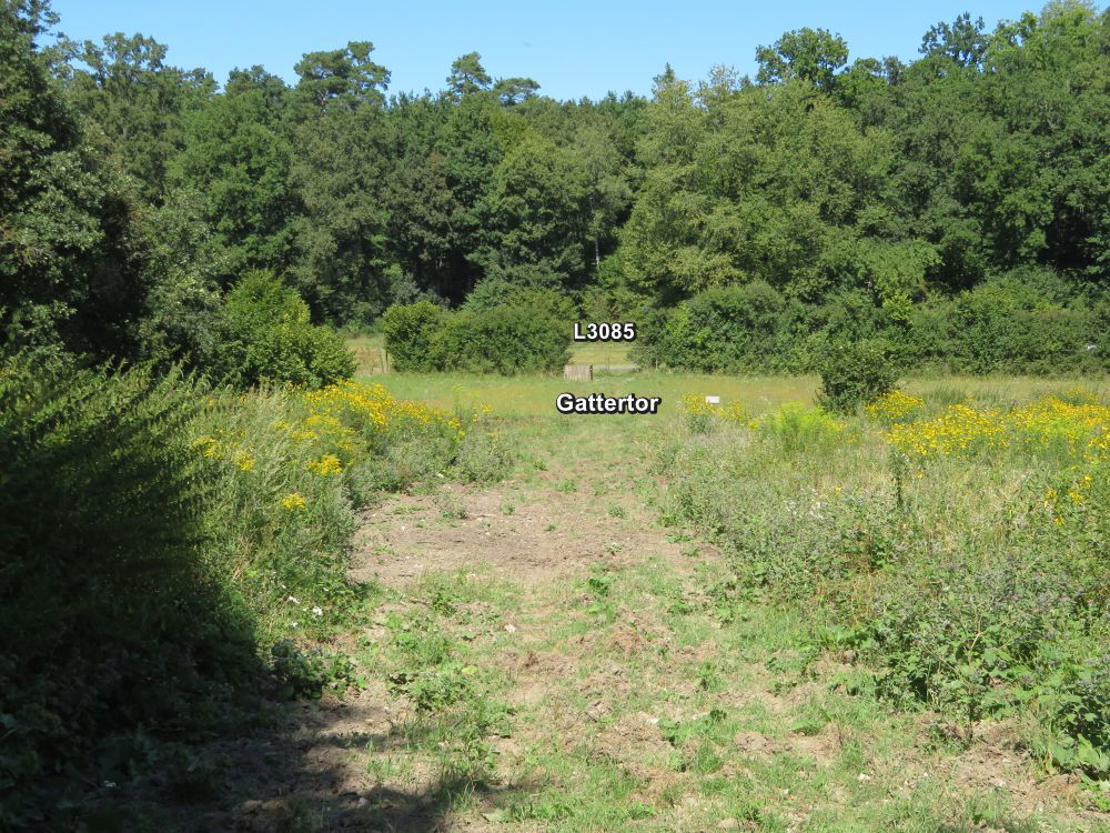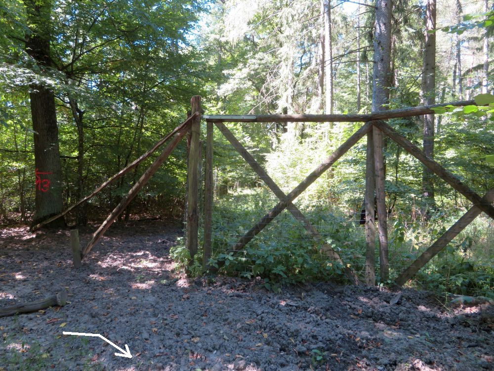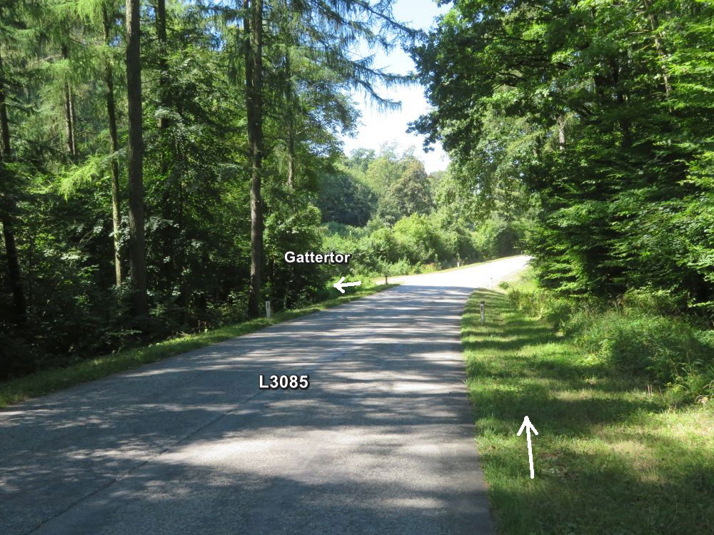 Am Straßenrand schreite ich dann kurz abwärts und zweige gegenüber zu einem Wildgatter hinüber.