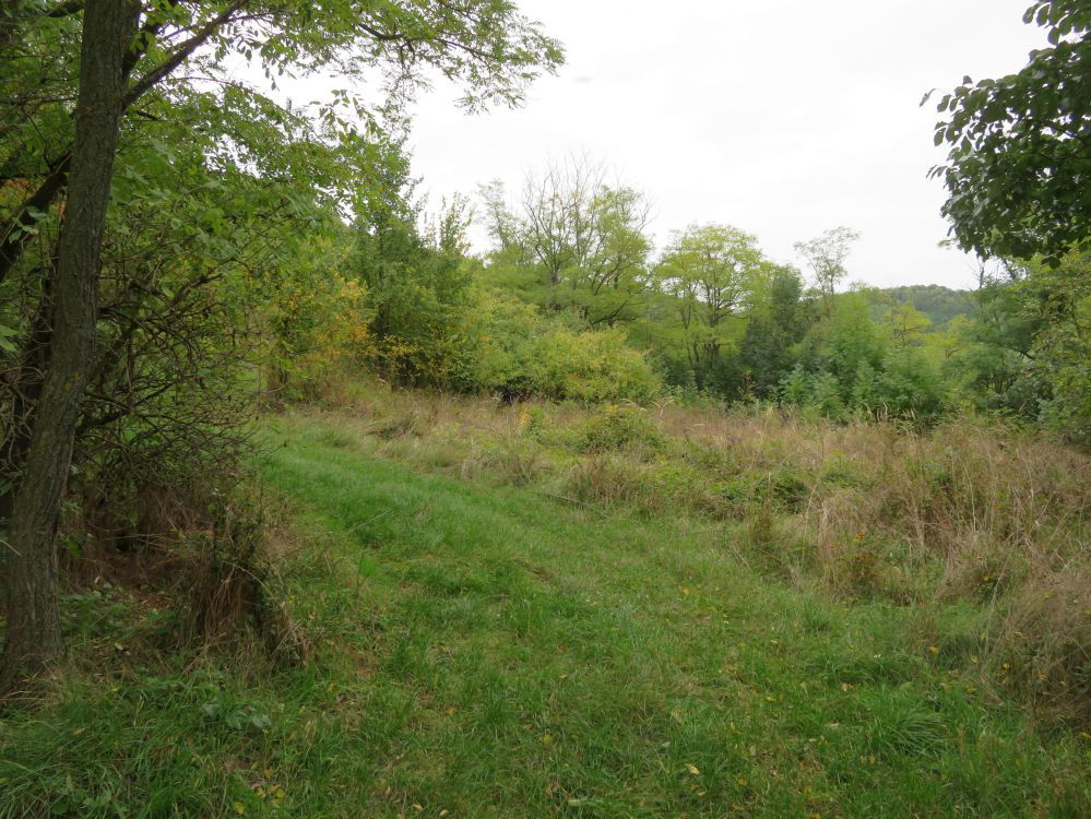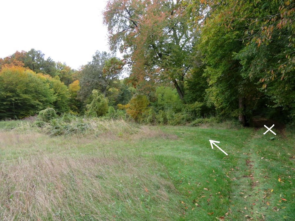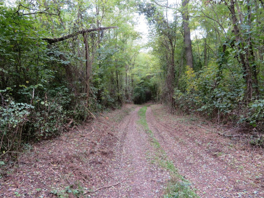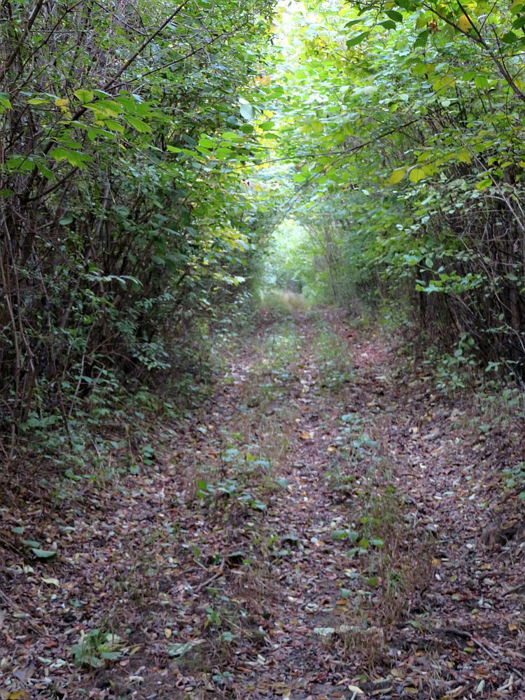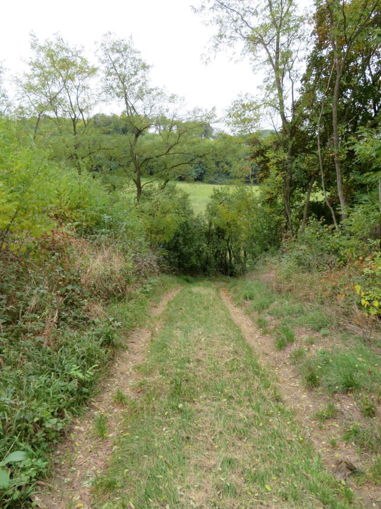 Durch den Wald hindurch bis zu einem querenden Weg an der Gemeindegrenze.