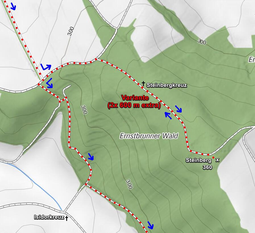 Hier noch unser Wegverlauf am nördlichsten Teil des Ernstbrunner Waldes:
