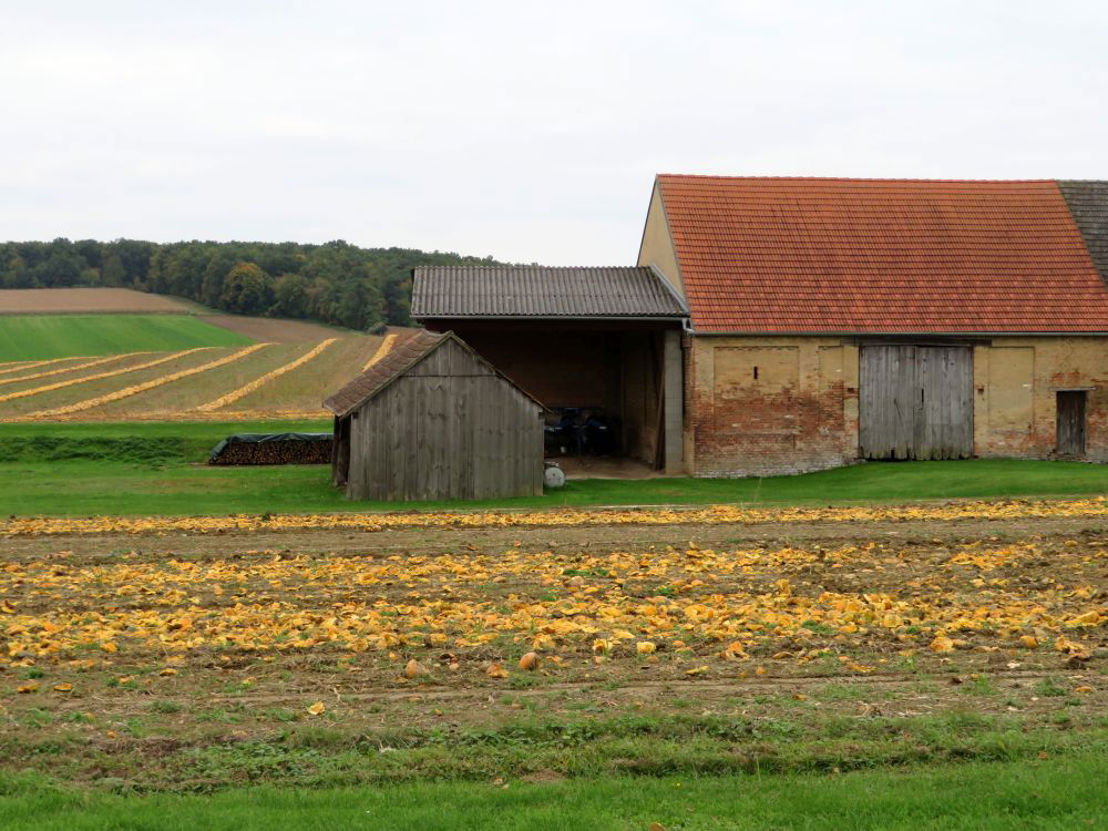 Nahe dem Lagerhaus geht es im Hintaus an den Ortsrand.