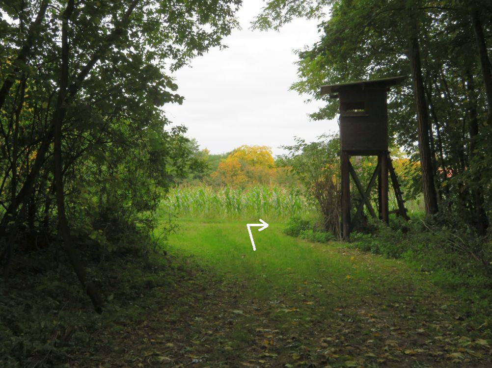 Nach einem kurzen Aufschwung geht es bei einem Hochstand rechts weiter.