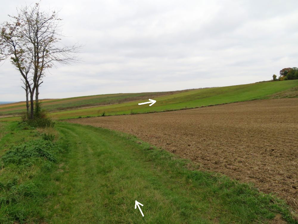 Nach dem Waldstück geht es durch die Flur "Himmeltau" zur L35 hinab.
