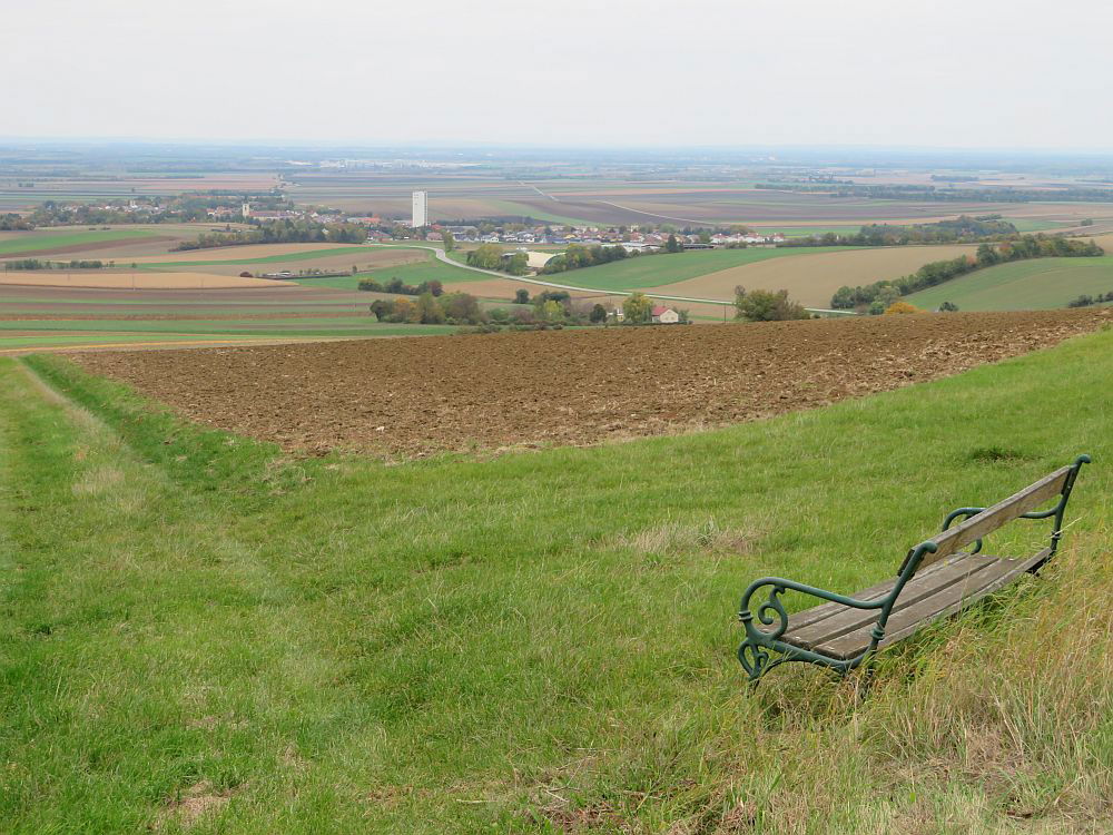 Bei einer Rastbank zweigt der Weg talwärts nach Stronsdorf ab.