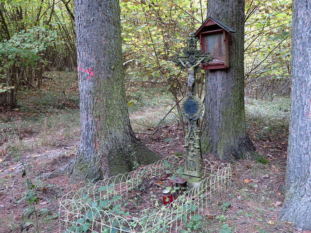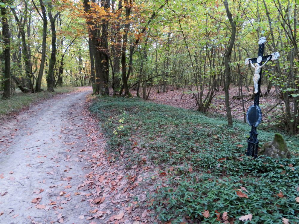 ...und folge dem Weg ostwärts, vorbei an einem weiteren Kreuz, zum Jakobsweg hinab.