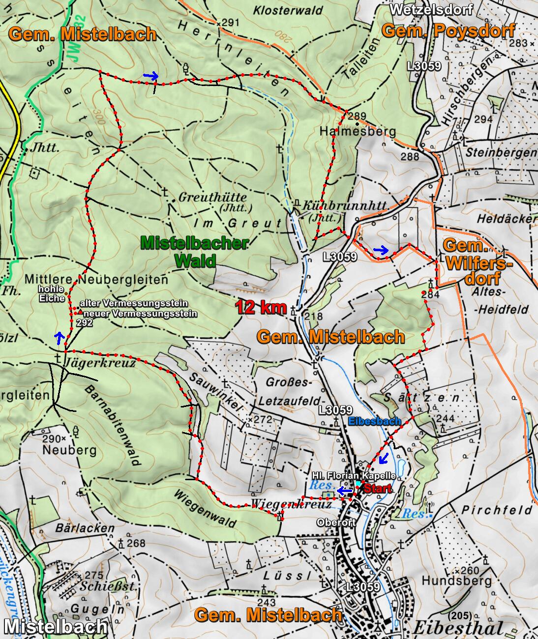 Start und Ziel: Im Oberort bei der Florianikapelle (L3059, Ecke Florianigasse).
