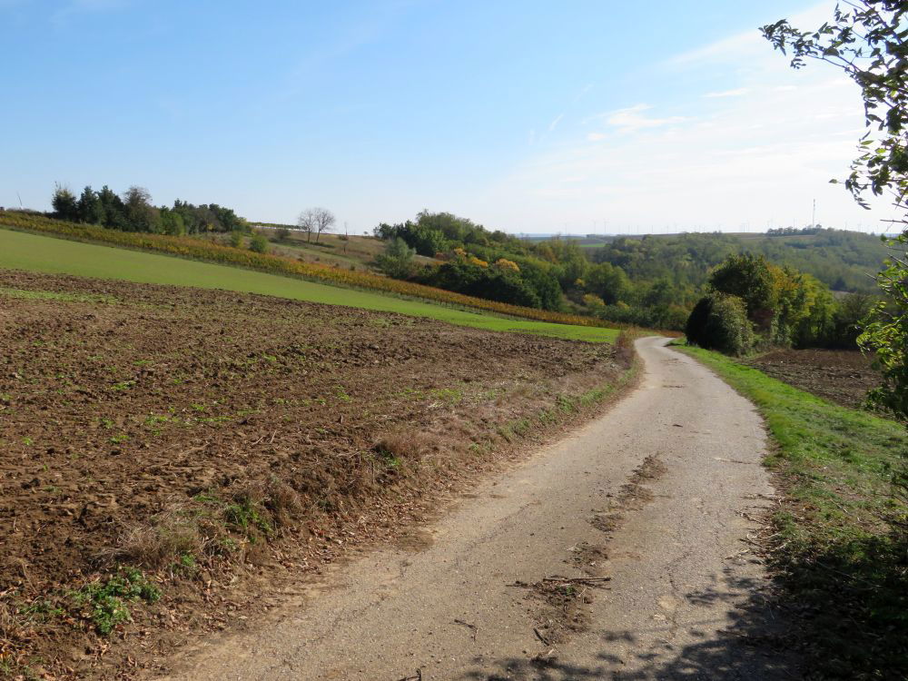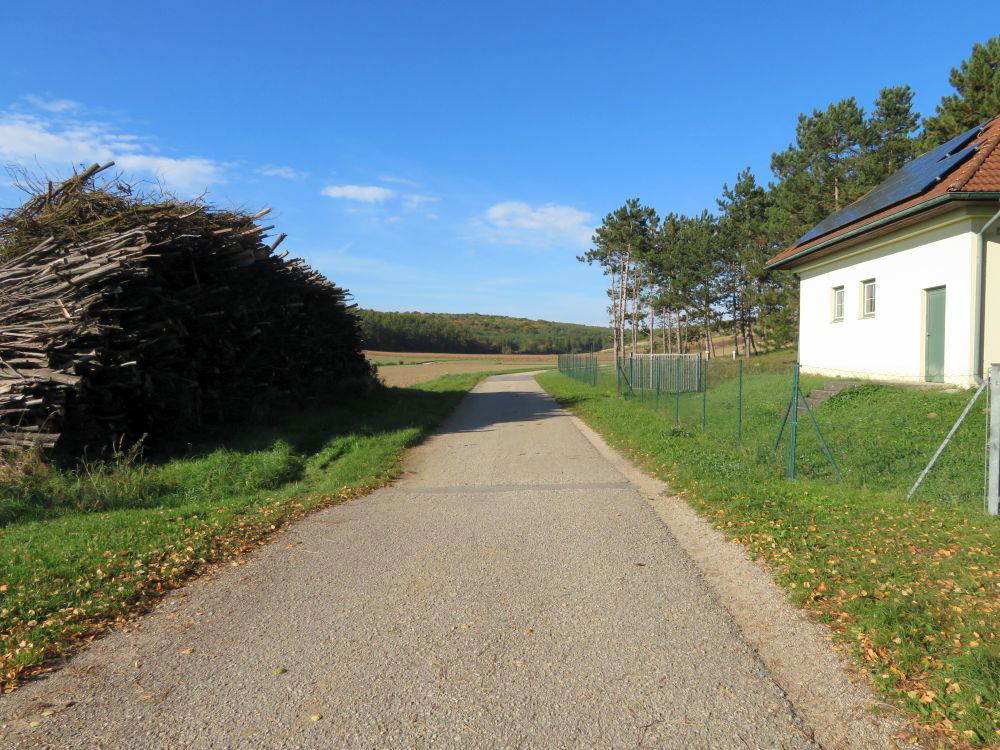 Nach Querung der Landesstraße geht es gegenüber zur Gemeindegrenze nach Wilfersdorf hinauf.