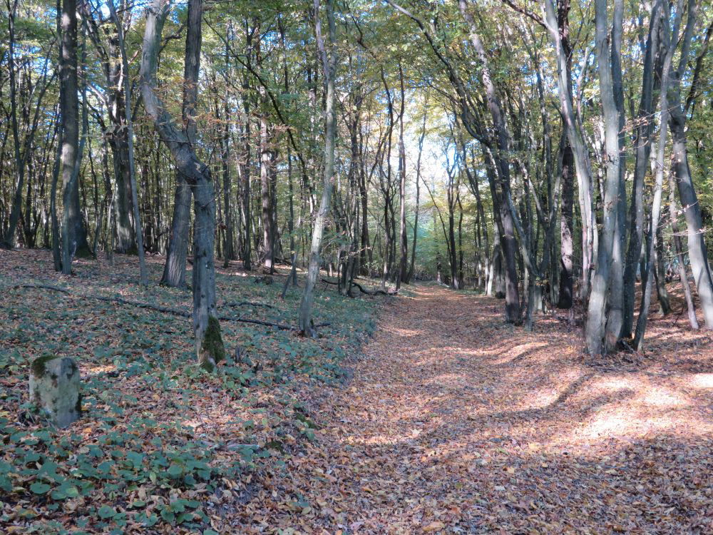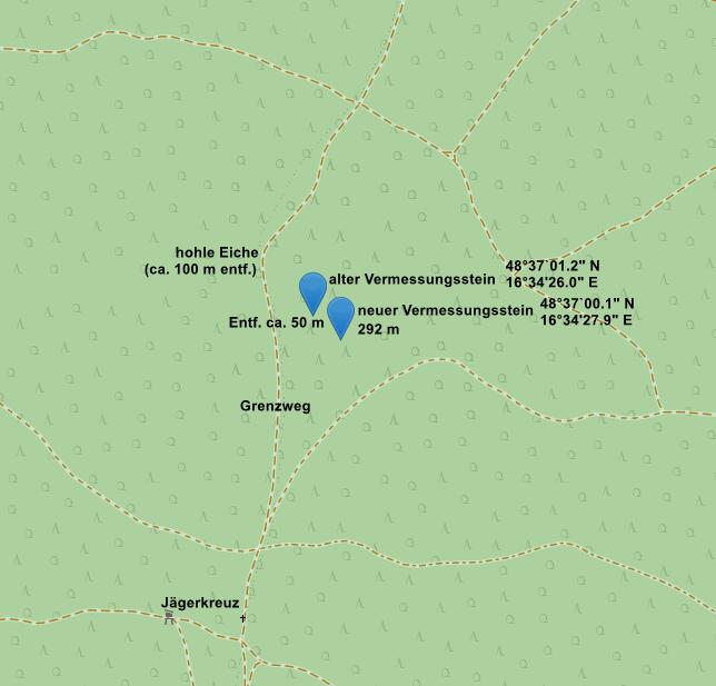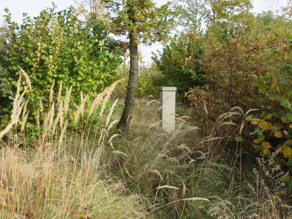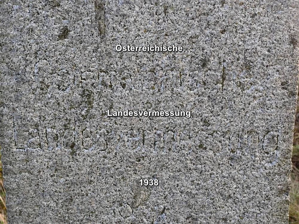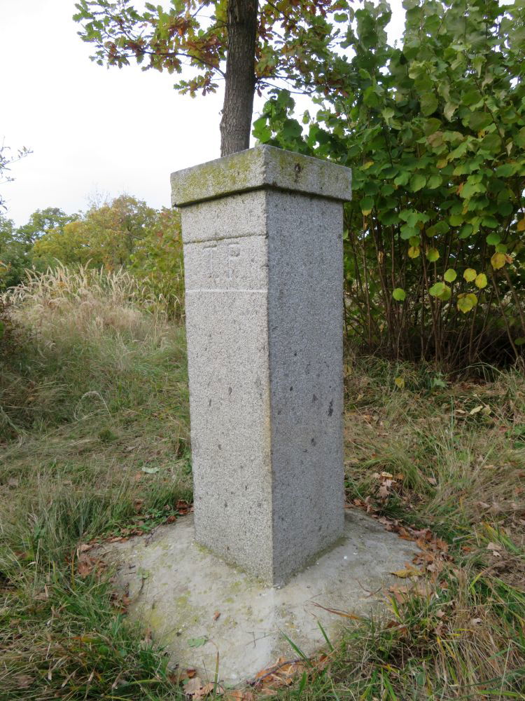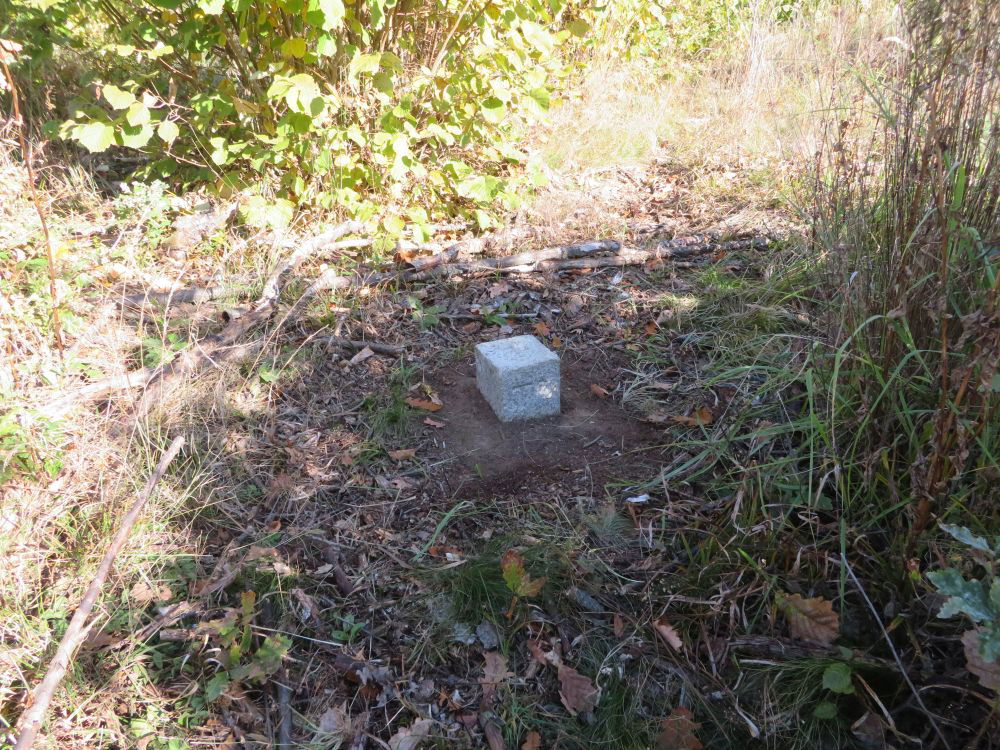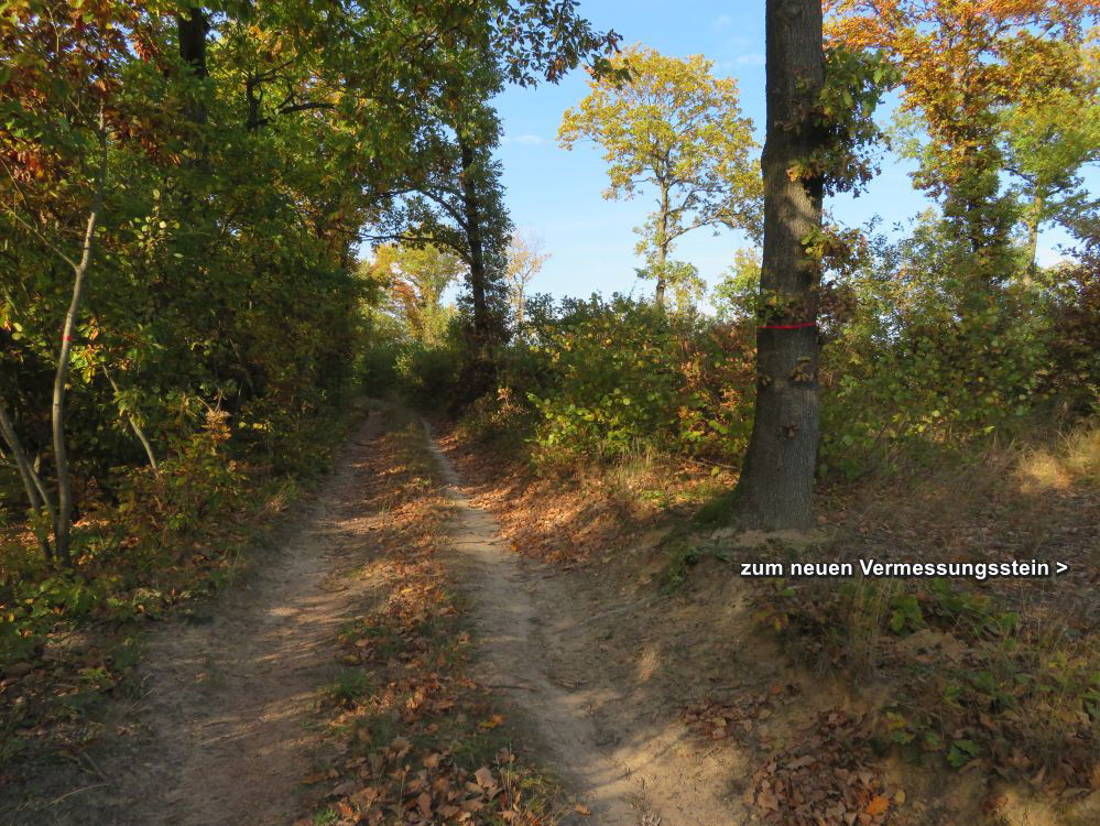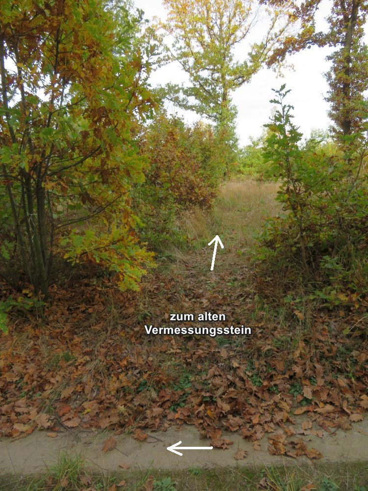 Danach geht es zum Grenzweg zurück und kurz danach gibt es einen weiteren Stichweg (wird linksseitig angezeigt) zu einem alten Vermessungsstein:
