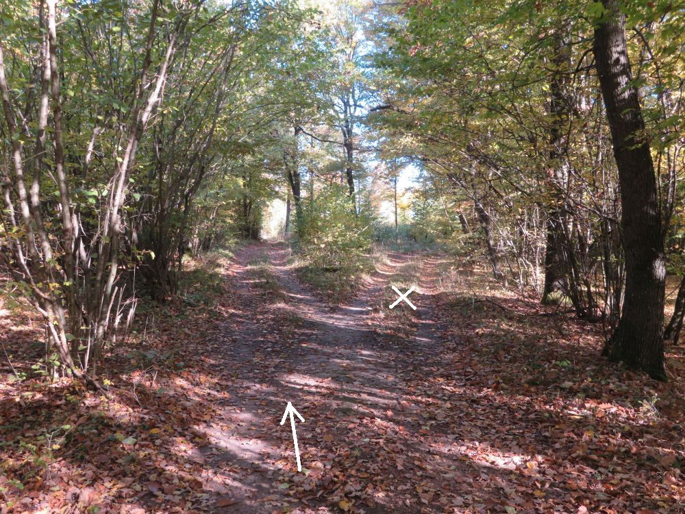 Dazwischen geht es bei einer Linksabzweigung geradeaus über eine Lichtung weiter.
