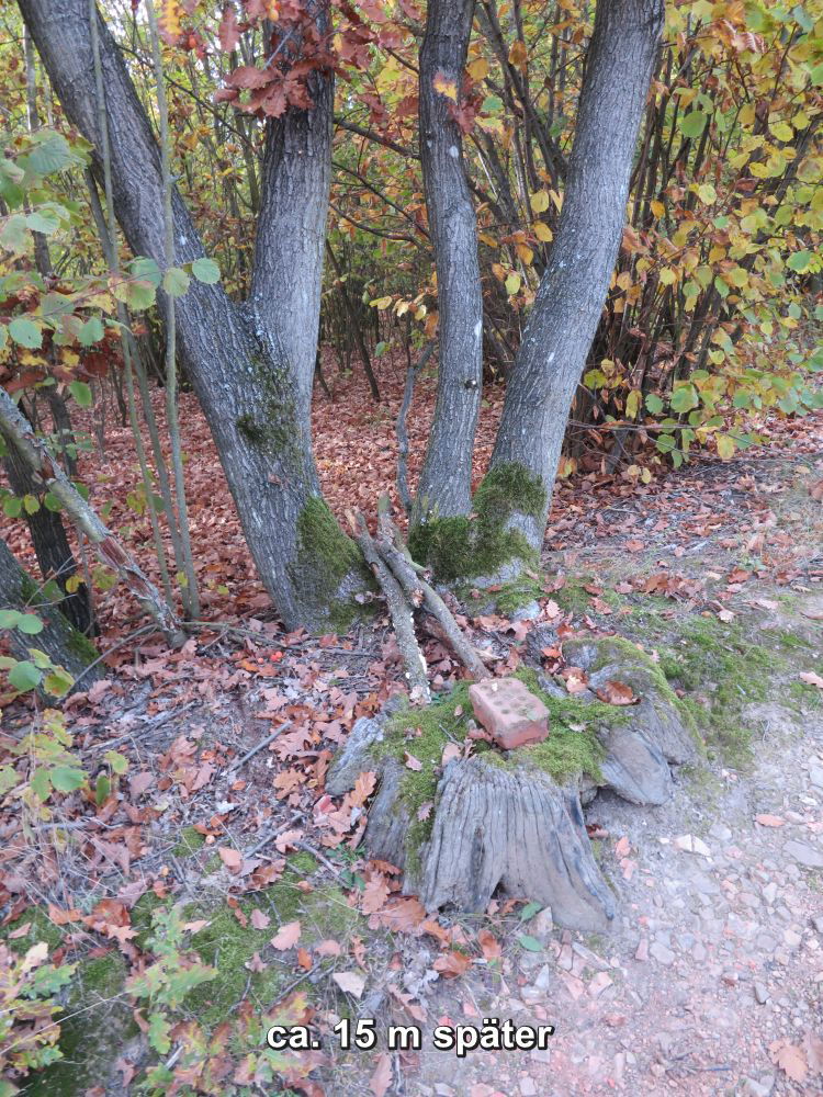 Bei einem markierten Baum mache ich einen Abstecher zum (neuen) Vermessungsstein auf Höhe 292 m.