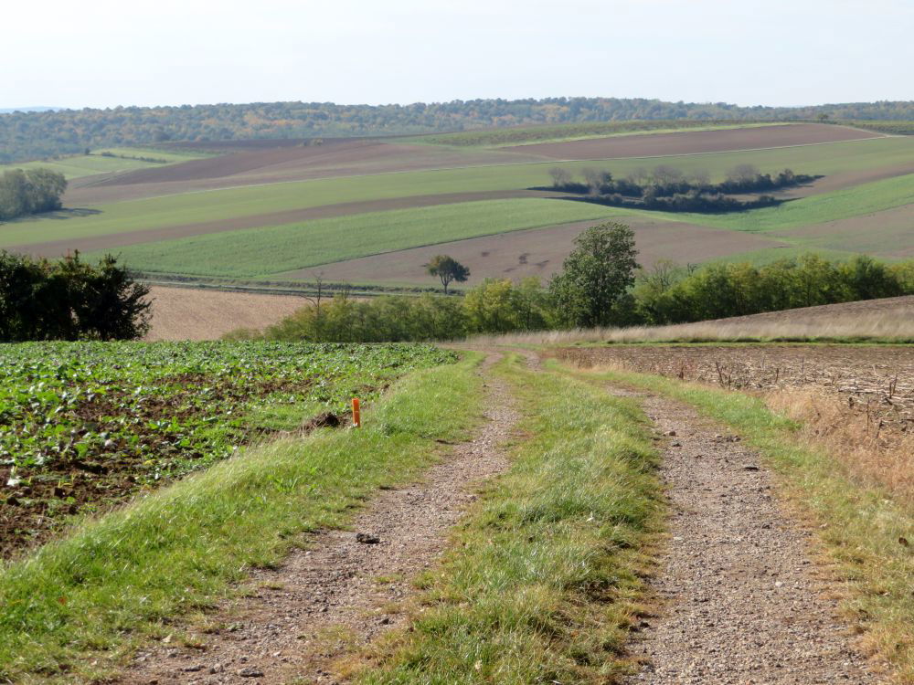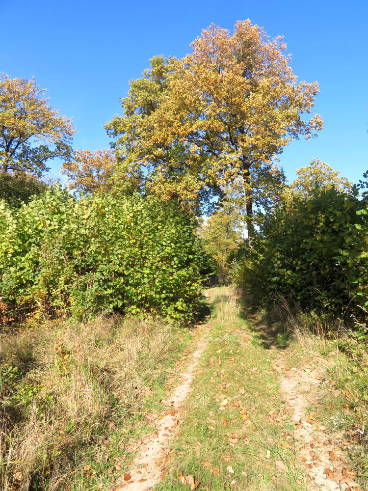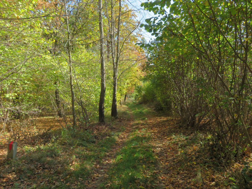 Dort zweige ich rechts ab und wandere in Waldrandnähe durch den Forst.