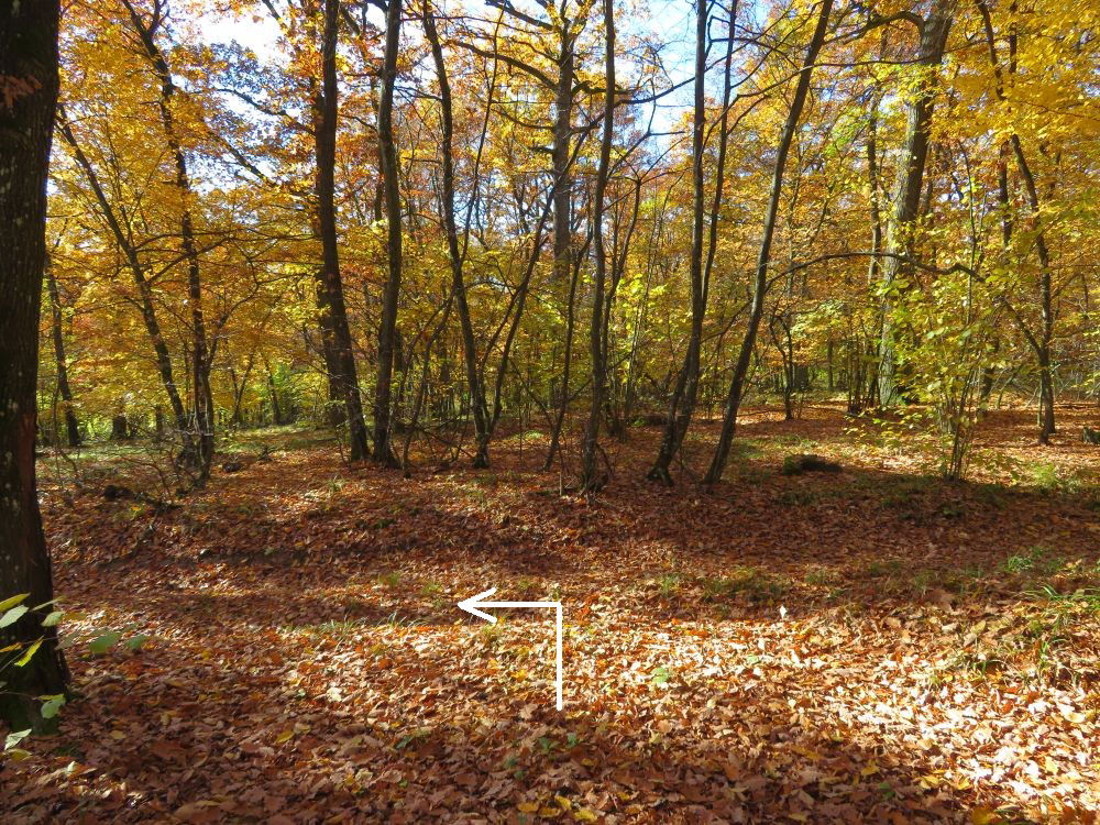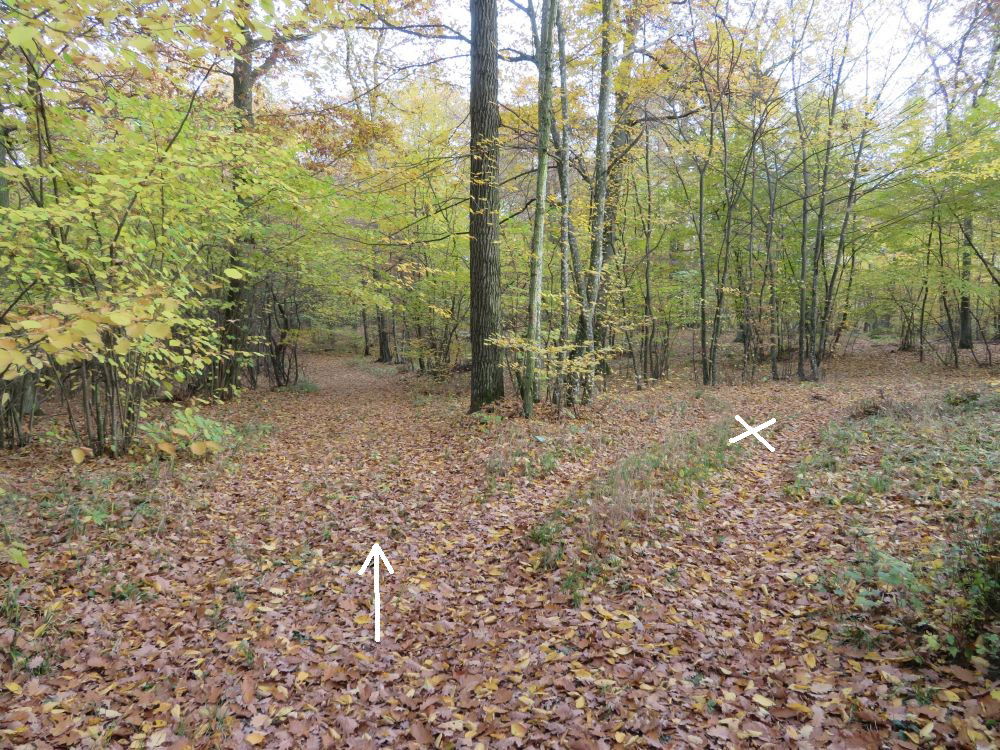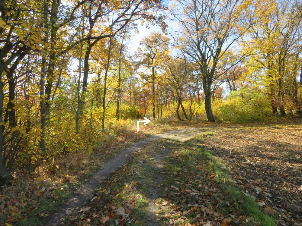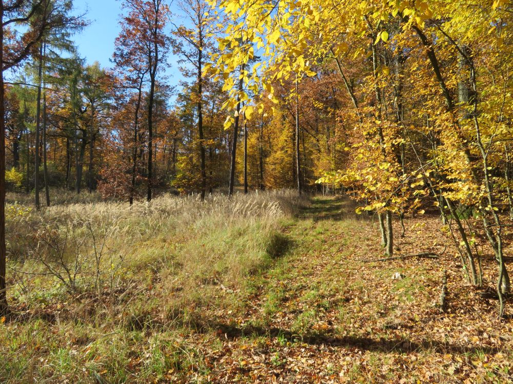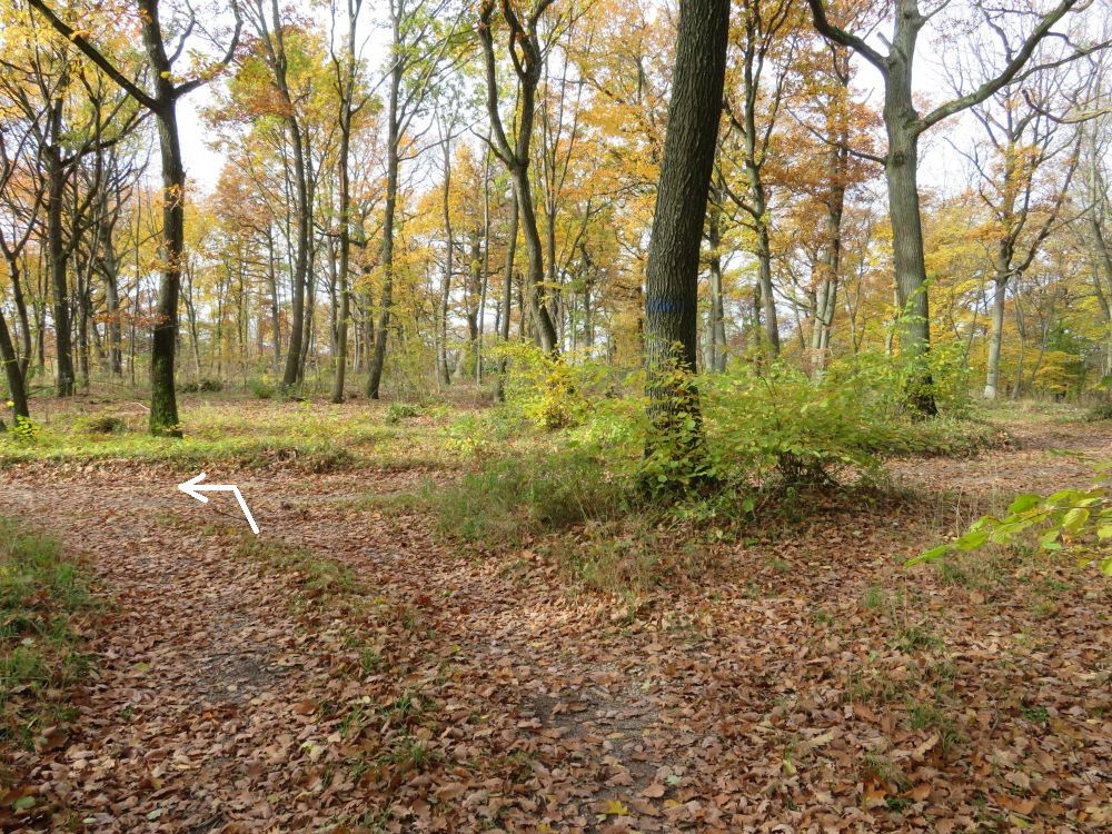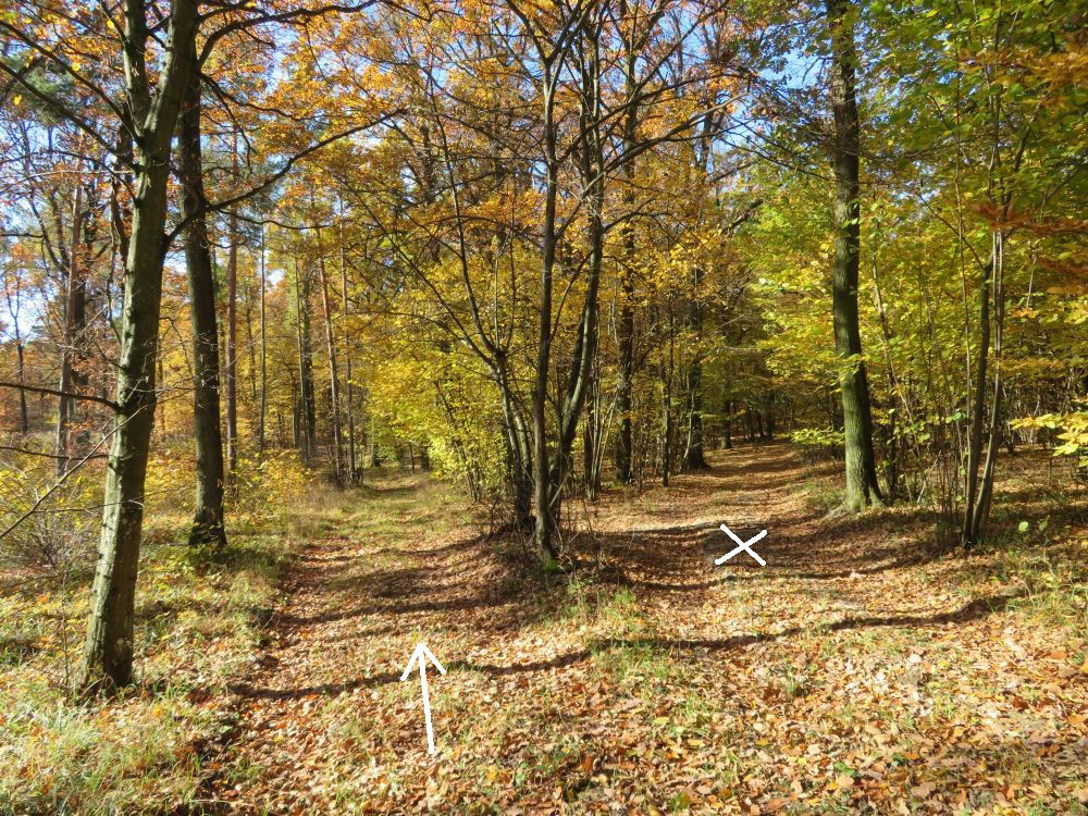 Nach einer Einmündung in einen Querweg rechts bis zu einer Lichtung: