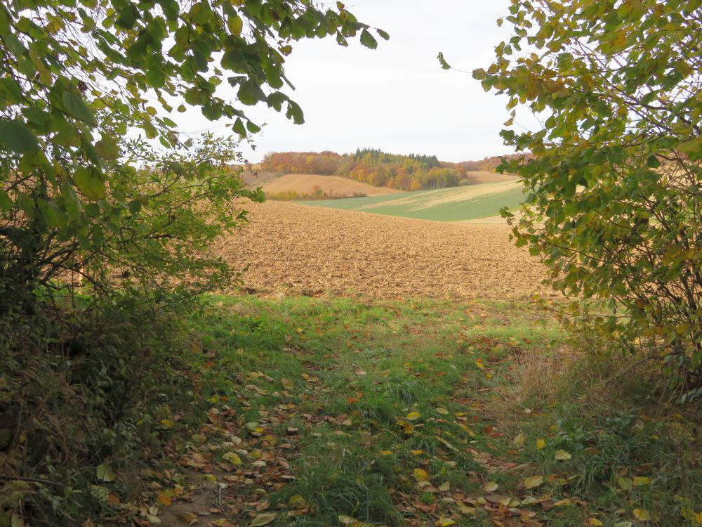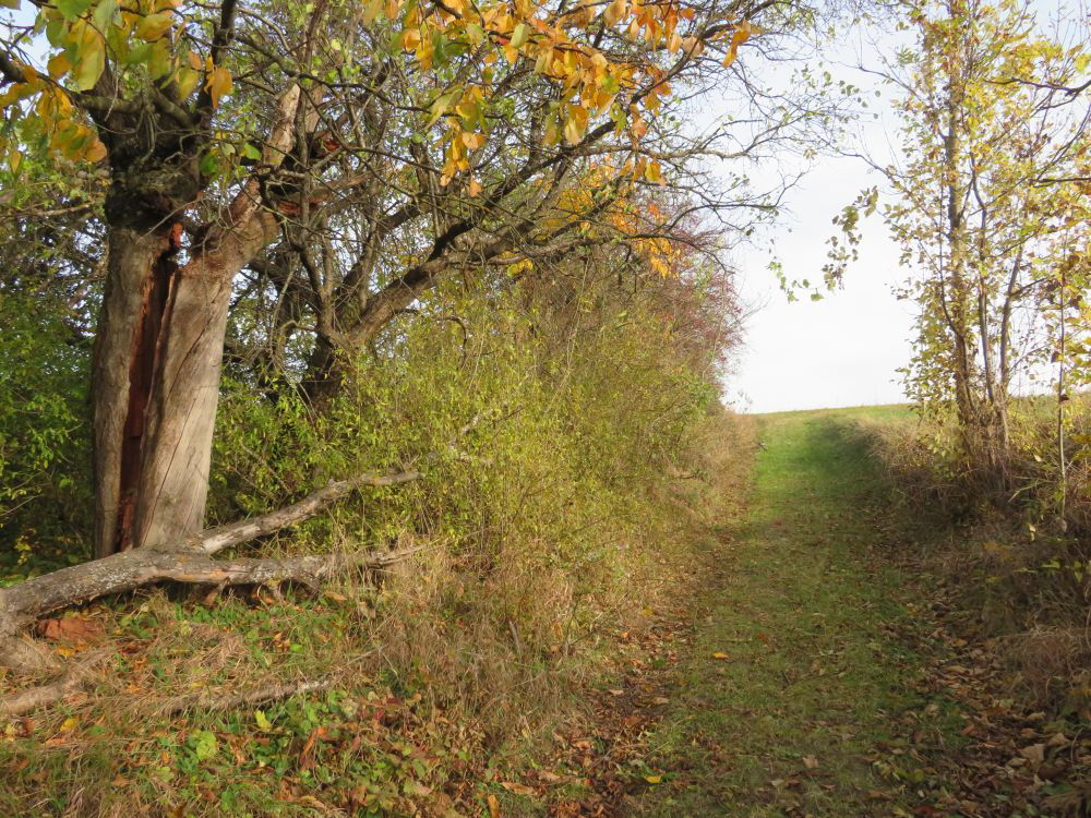 Danach zweige ich rechts zum Ladenbrunner Wald hinauf und marschiere erst am Waldrand entlang.