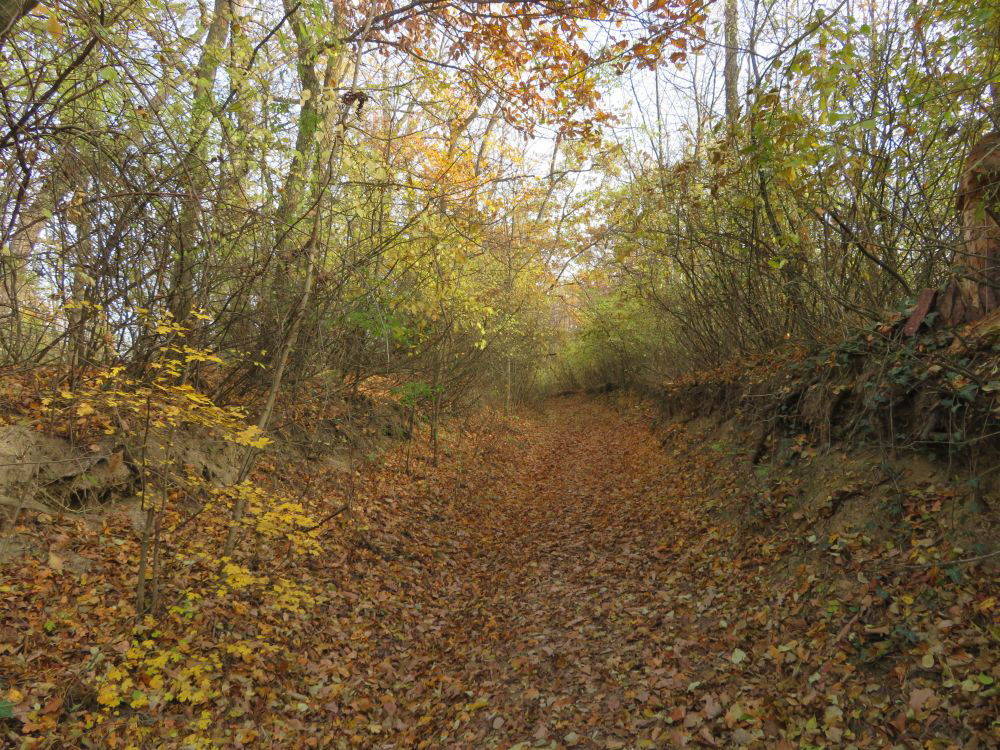 ...geht es entlang eines Hohlweges...