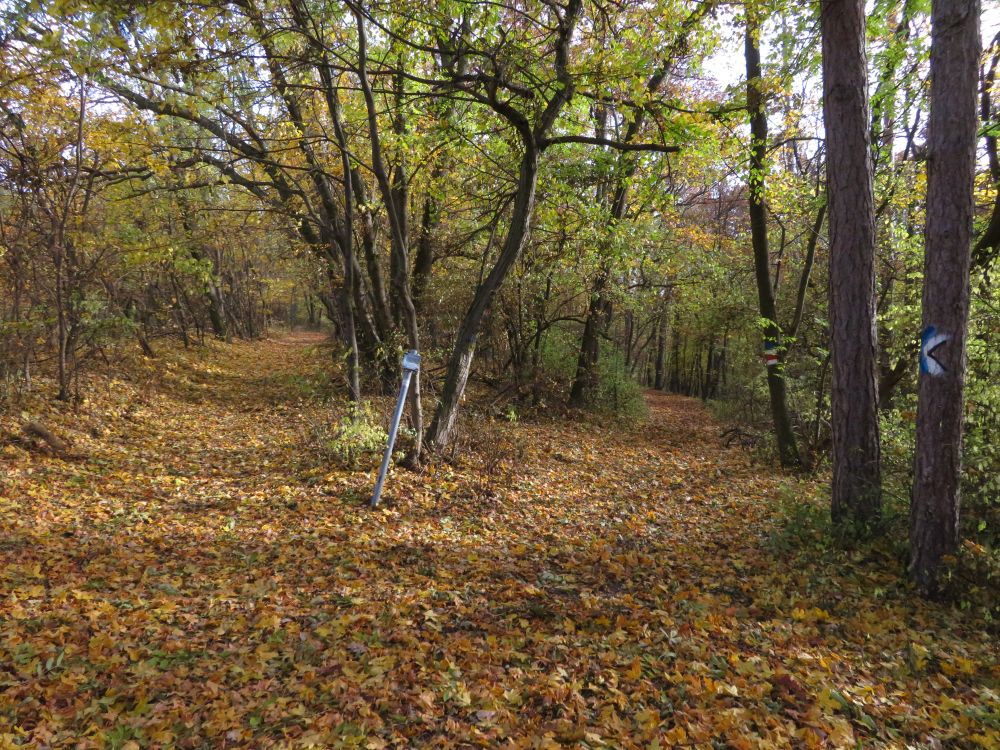 Kurz darauf zweigt ein Weg linksseitig ab und führt auf einen Querweg hinauf.