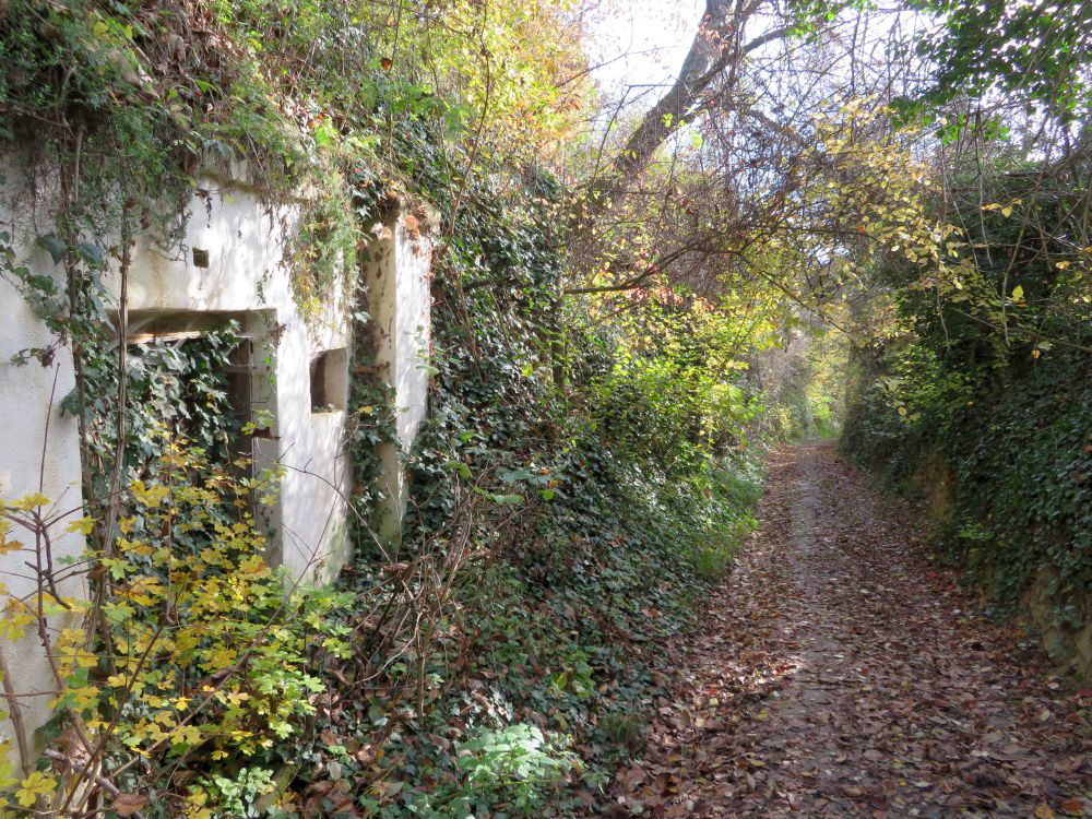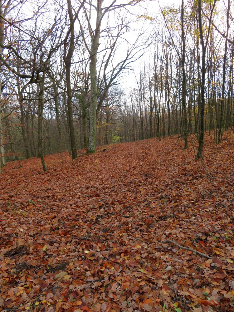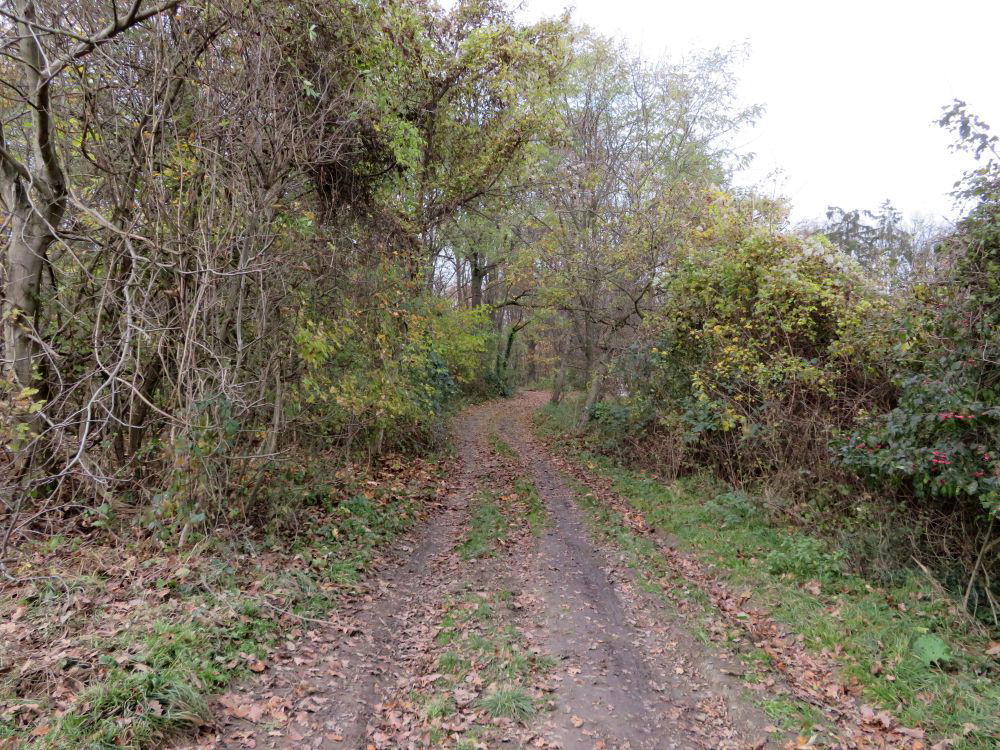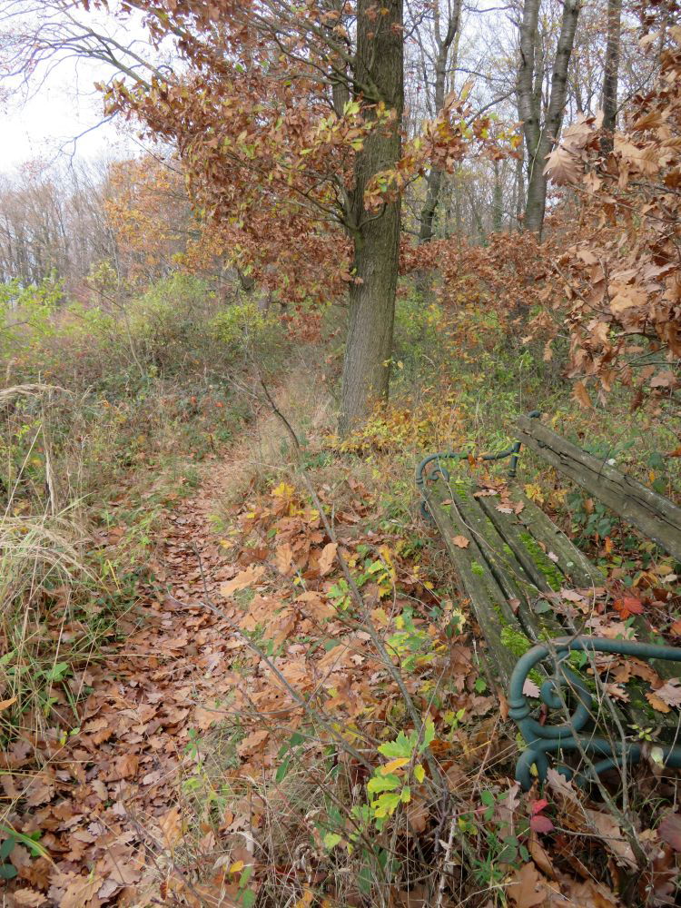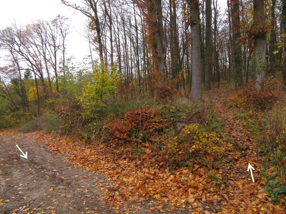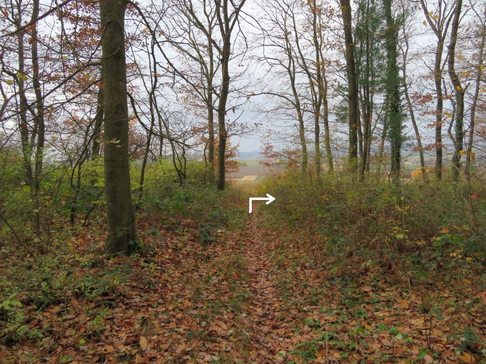 Weiter unten, bei einer Gegensteigung, zweigt links ein unscheinbarer Weg ab, entlang welchem es weiter abwärts geht.