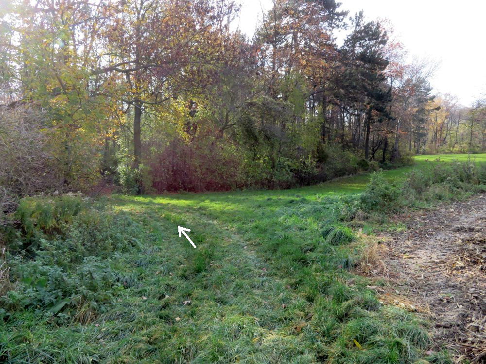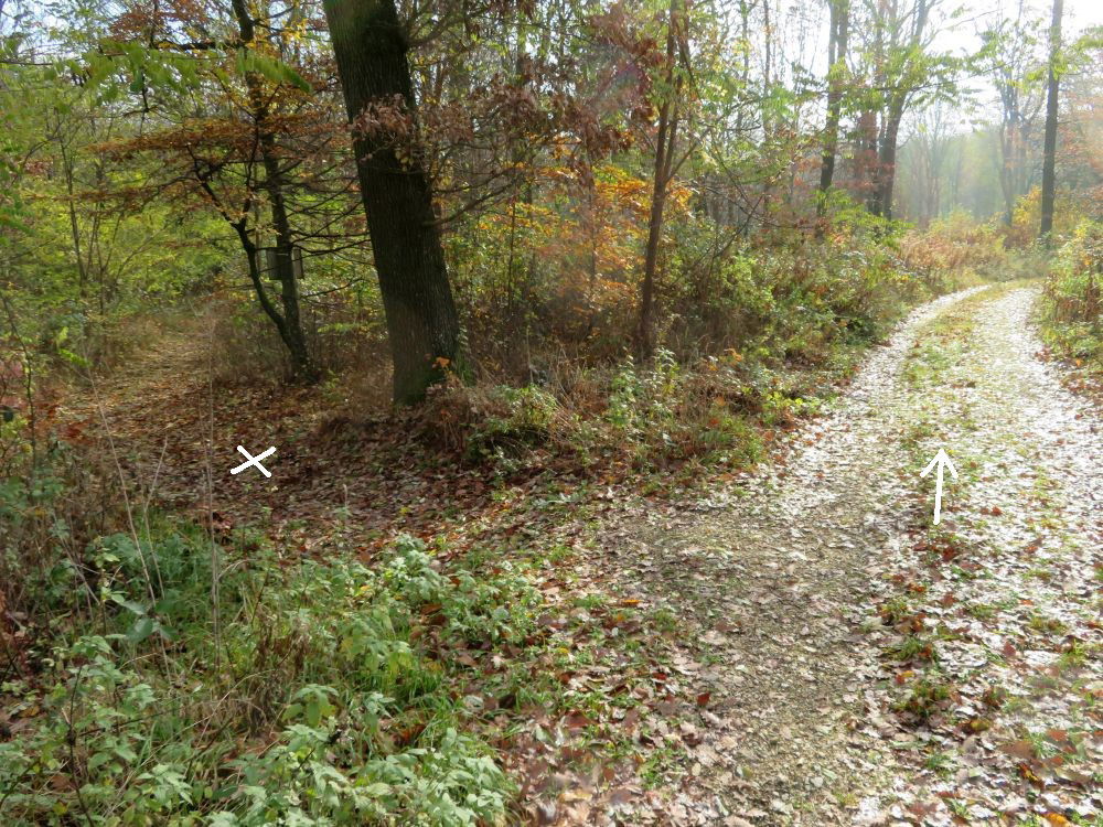 Hinter der Imbisshütte folgen wir einem Weg zum Waldrand, zweigen bald links ab...