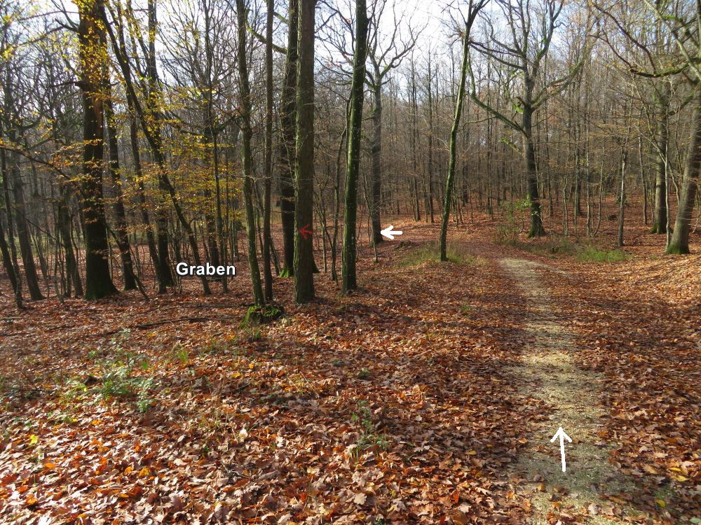 Nach einem linksseitig beginnenden Graben links abzweigen...