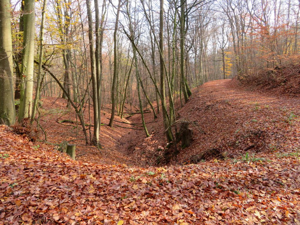 Bei Kellern angelangt, zweigen wir rechts ab und gelangen zu einem parallel verlaufenden Hohlweg hinauf.