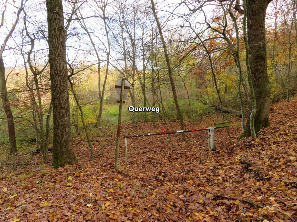 Dieser mündet bei einem Schranken in einen Querweg ein.