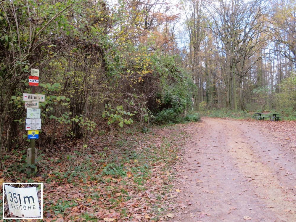 Wegweiser an der Bezirksgrenze MI/KO bei Höhe 351 m: