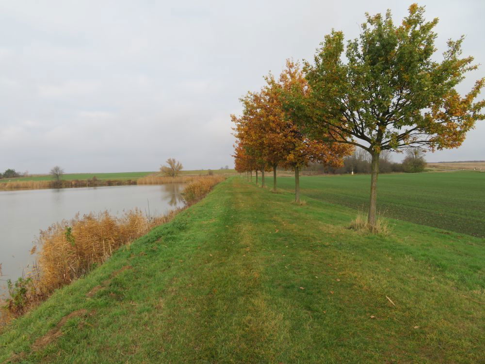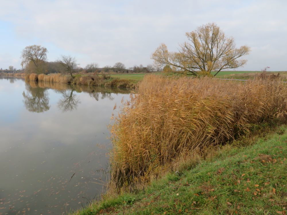 Nun wandern wir entlang dem wieder beginnenden Damm in Flussnähe weiter.